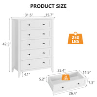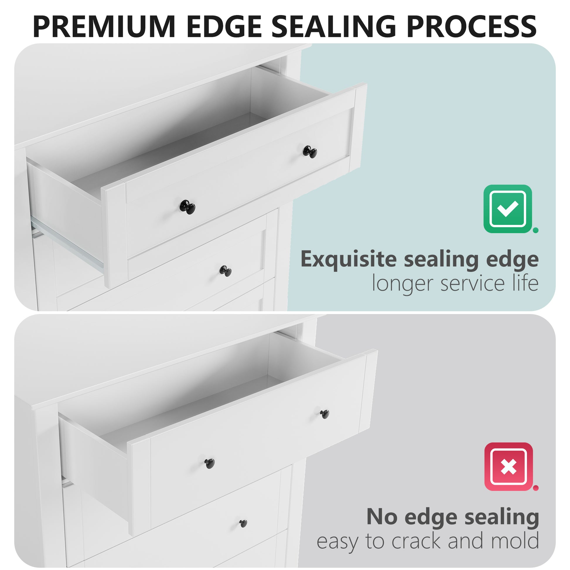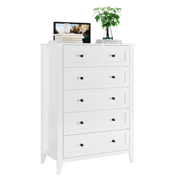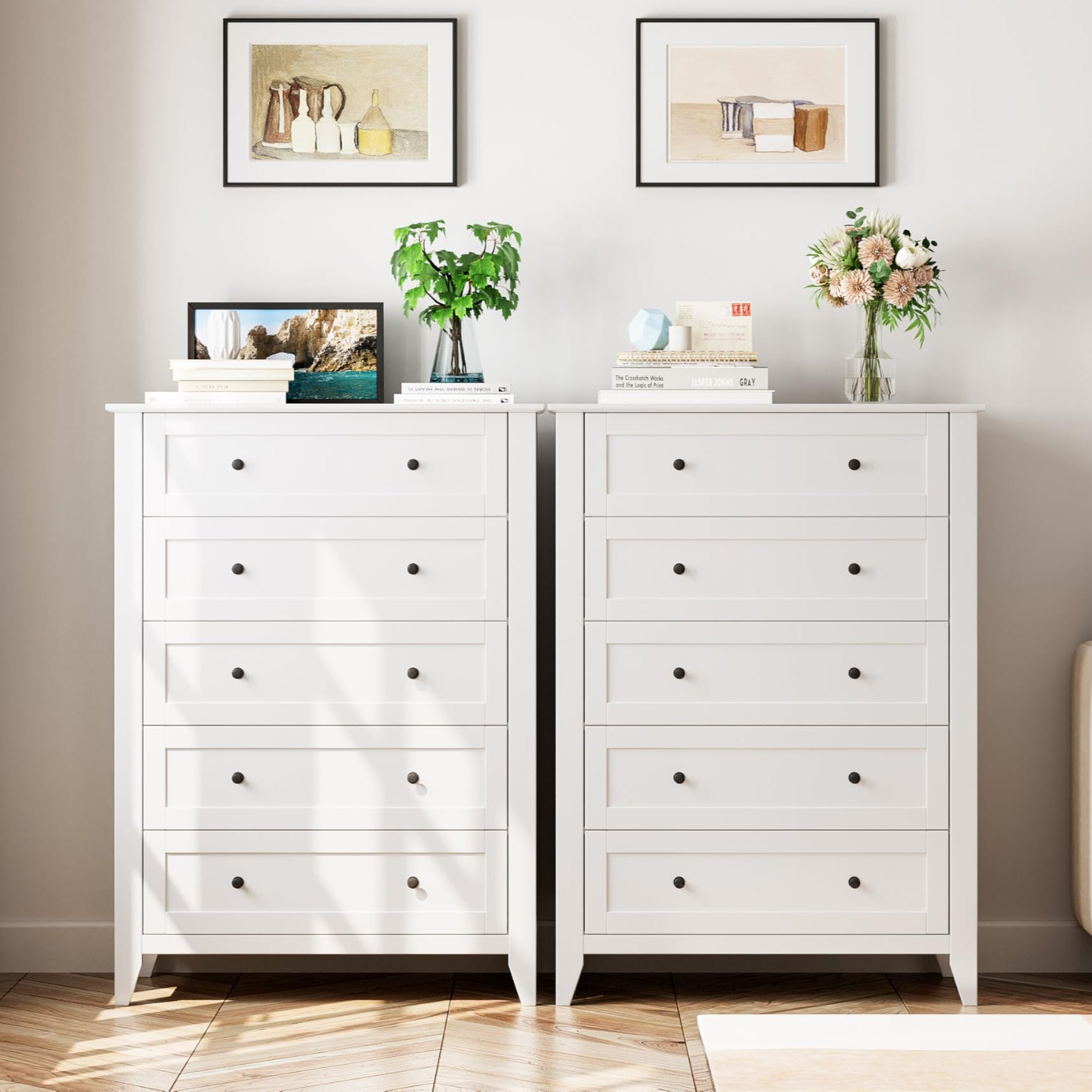 Garvee 5 Drawer Dresser for Bedroom, Wood Dresser with Deep Space & Metal Knobs, Tall Dresser Closet Organizer, Modern Chests of Drawers for Living Room, Entryway, Hallway, White