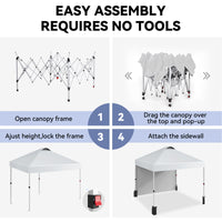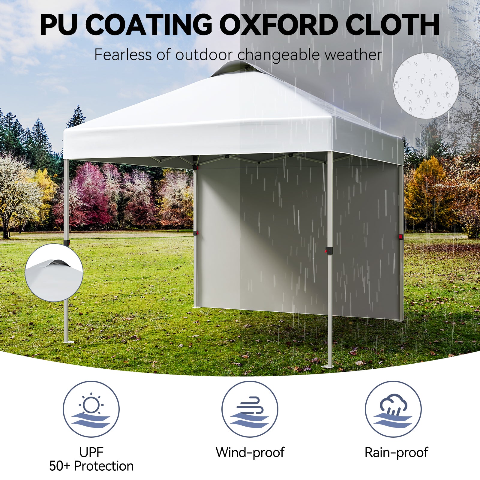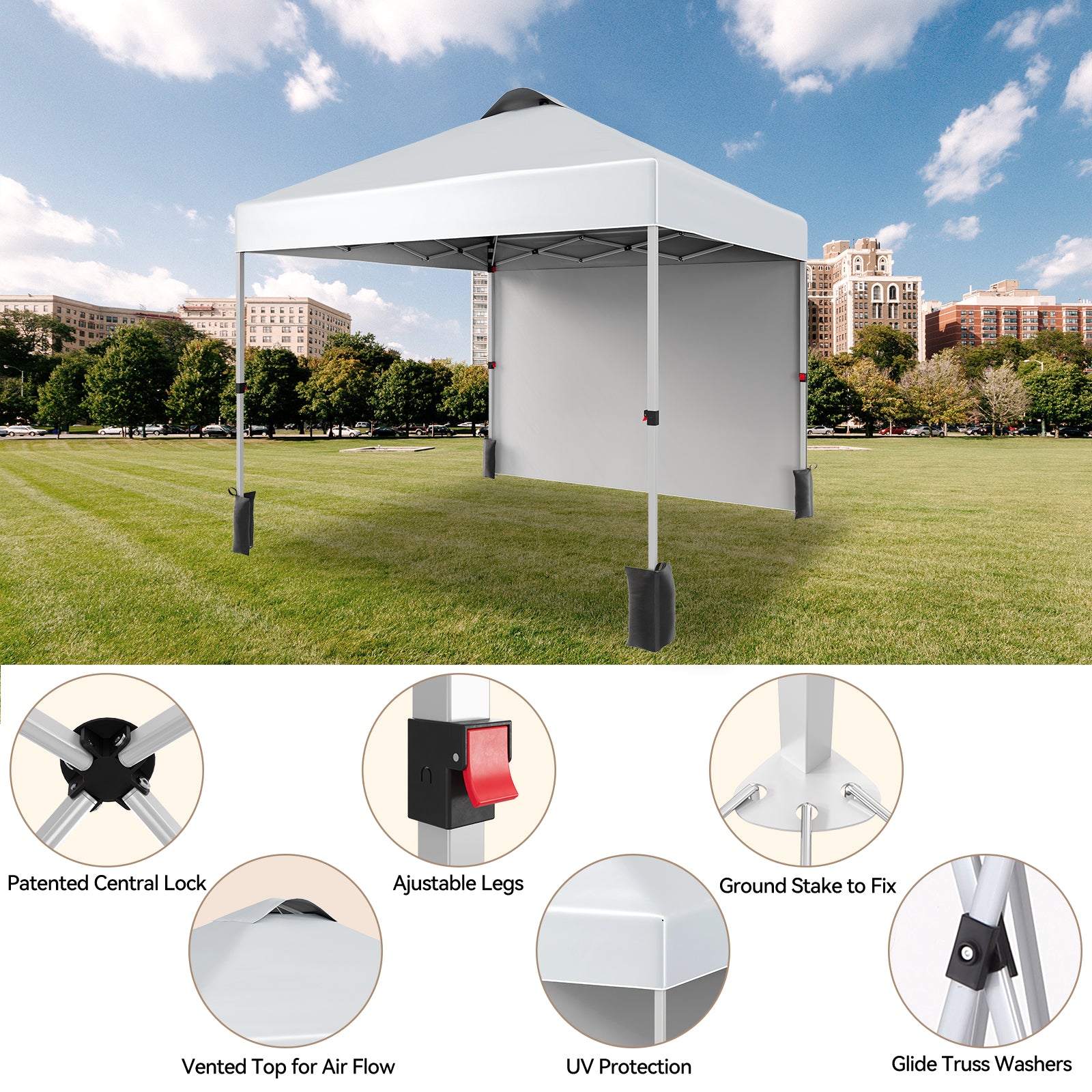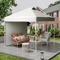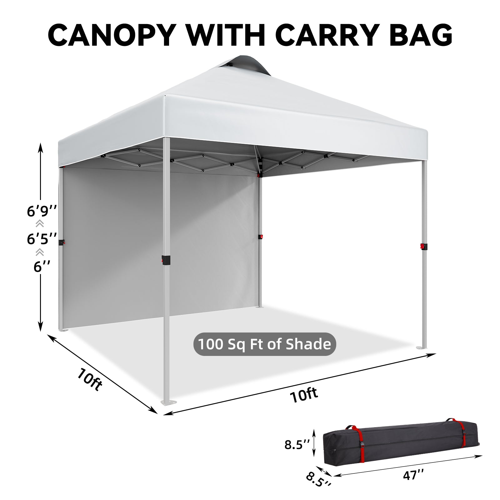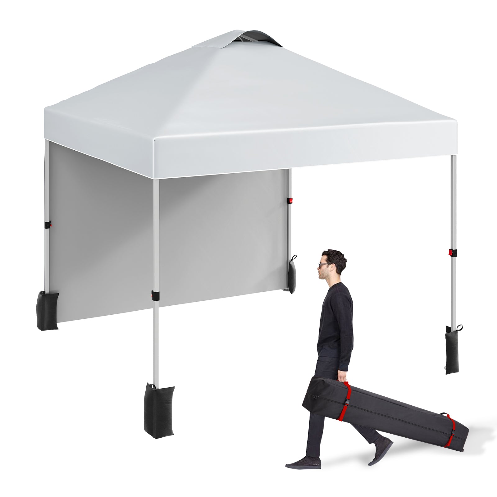 Garvee 10'x10' Commercial Pop-Up Canopy Portable Outdoor Tent with 1 Sidewall, 4 Stakes, Ropes, Weight Bags & Wheel Bag, White