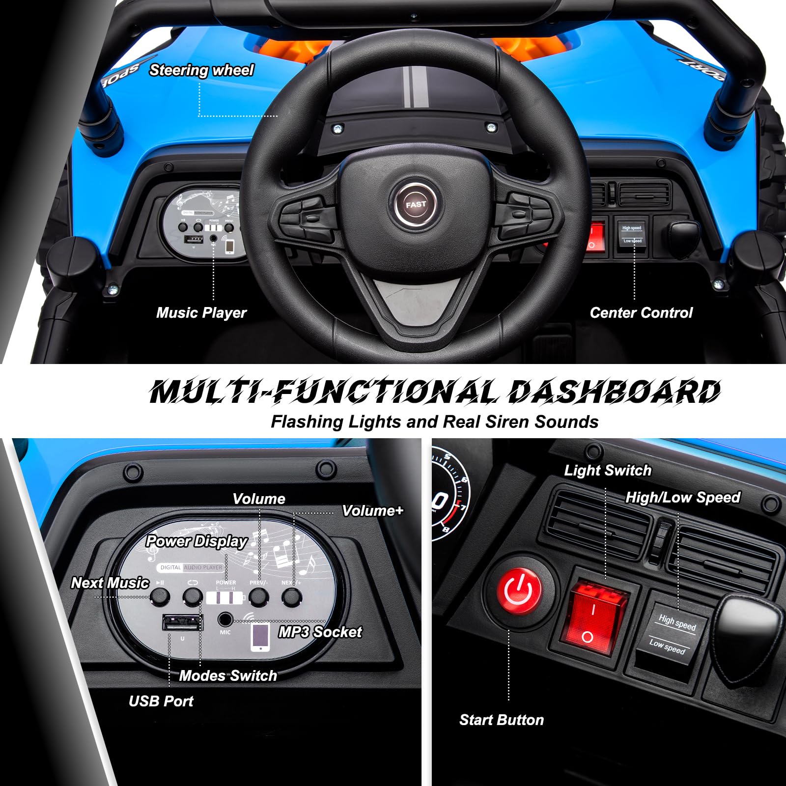 Garvee Ride - P Series: 12V Electric UTV Car with Remote Control, Ride on Truck with Toy Storage, Spring Suspension, LED Headlights, Ride Cars w/4 Wheels, Ride on Toys for Boys Girls, Blue