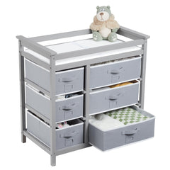 Garvee Baby Changing Table, Baby Changing Station Dresser with 6 Storage Drawers and Pad, Diaper Changing Table, Wooden Infant Diaper Changing Station Dresser for Baby Newborn Infant