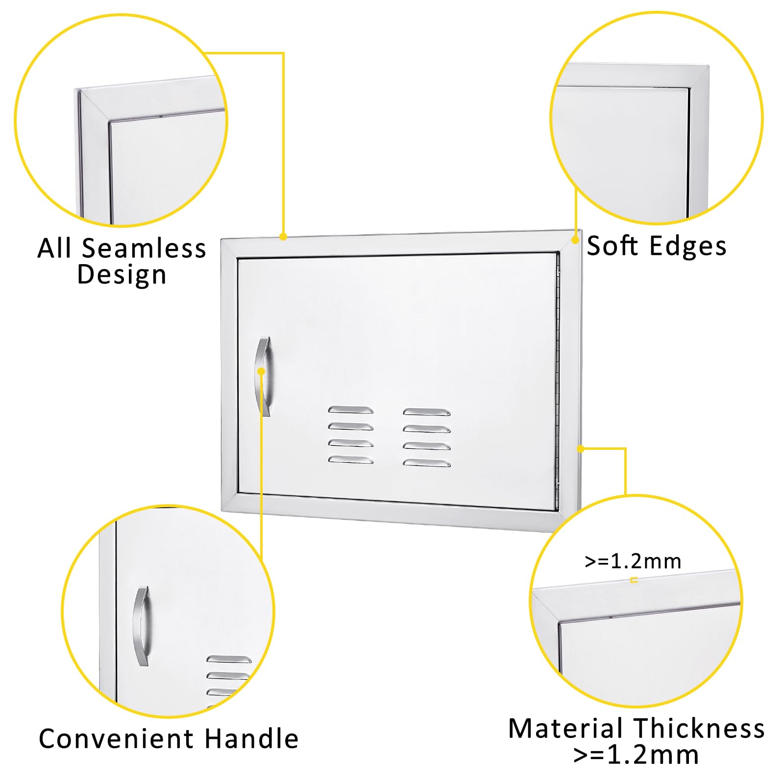 - 【Durable Stainless Steel】: Crafted from 304 stainless steel, this double-layer door is corrosion-resistant, wear-resistant, and features a brushed surface that is easy to clean, ensuring long-lasting durability for your outdoor kitchen. With a fully seamless design, no sharp corners to protects users' safety.