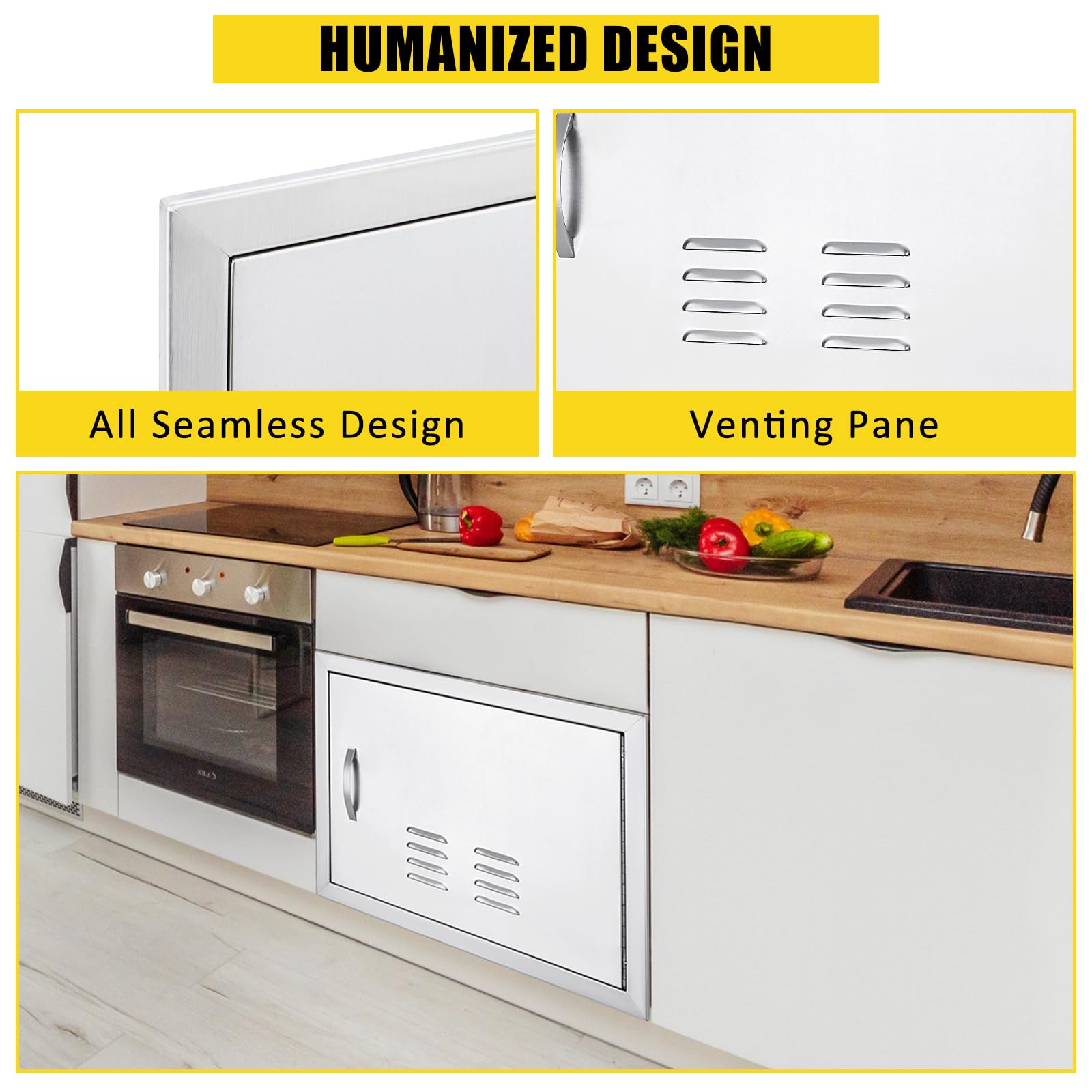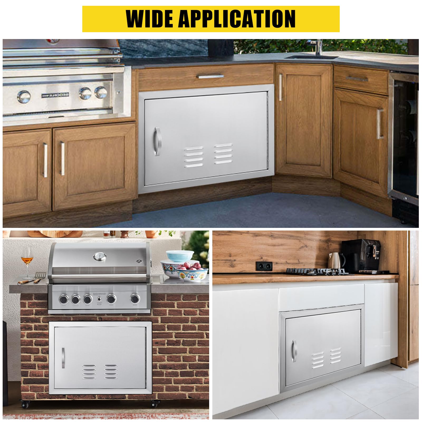 - 【Weatherproof Design】: Great for indoor/outdoor kitchens and all other outside weather its rain or shine. Especially for the outdoor kitchen and BBQ island. Besides, our door also provides a service area for electrical, computer cables, security systems, plumbing, and sprinkler system.