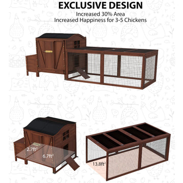 Garvee Chicken Coop, Outdoor Chicken Coop for 3-5 Chickens, 106in Chicken Coop with Run, Wooden Chicken Coop with Waterproof Roof, Nesting Box, Pull Out Trays and Ramp, Red Train