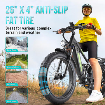 Garvee Electric Bike for Adults 1000W, 48V 17.5AH Battery Adult Electric Bicycles, 26" Fat Tire Full Suspension Ebike, 28MPH Mountain Beach E Bike, 7 Speed, 60Miles Range, UL Certified