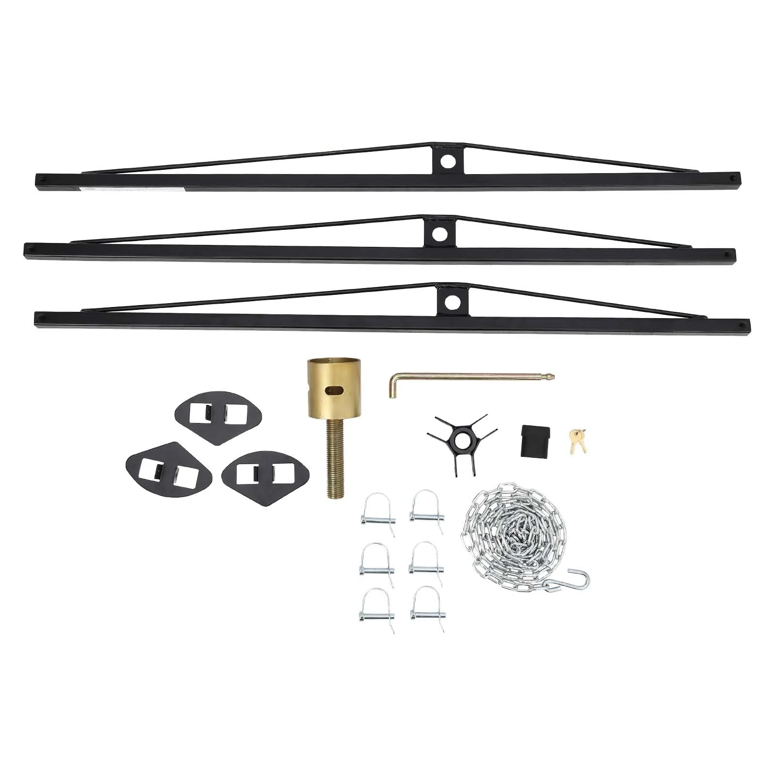 Includes all essentials for immediate use: Top shaft*1, Connecting rod*3, Chain*1, Latch buckle*6, Bottom plate*3, Long bolt*1, Lock*1, Key*2.