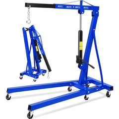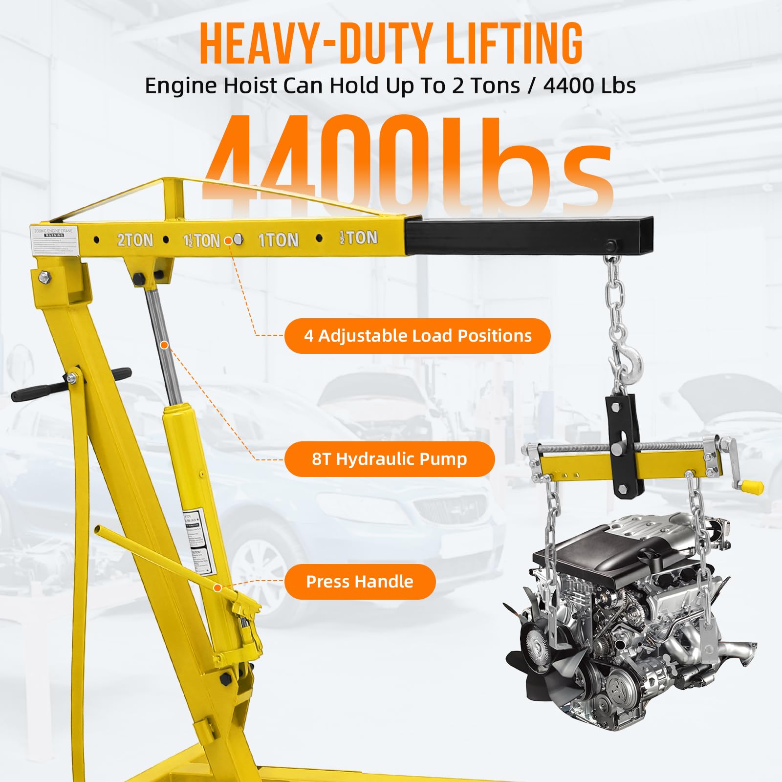 Garvee Engine Hoist with Lever, 2 Ton 4000 Lbs Heavy Duty Folding Cherry Picker Engine Lift Hydraulic Tilting Engine Shop Crane with 6 Iron Caster Wheels Telescopic Boom Hitch,Yellow