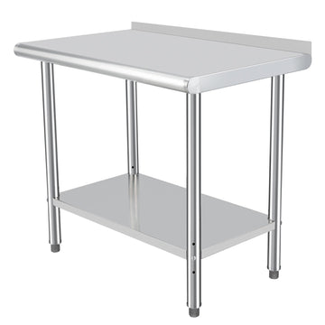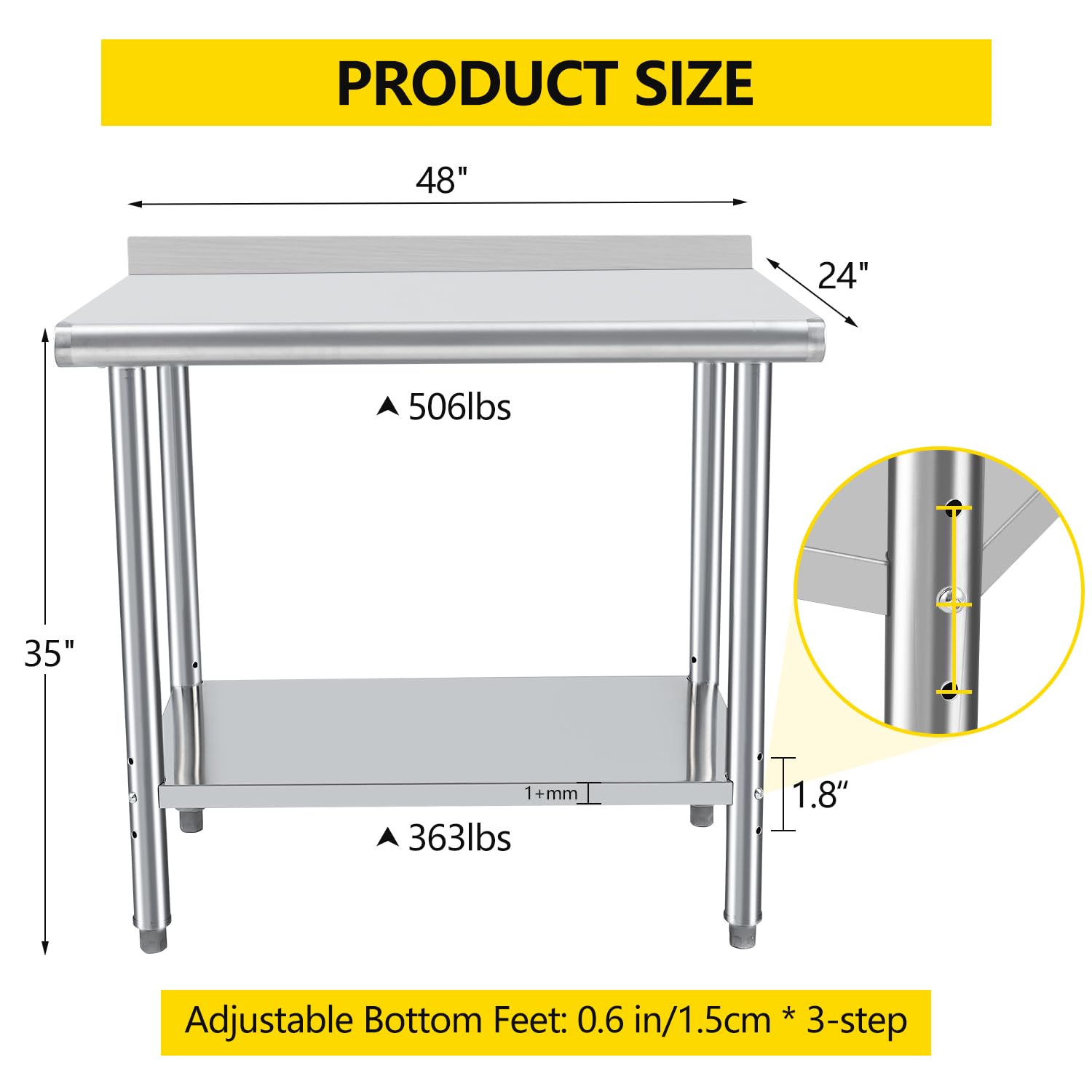 GARVEE 48"L x 24"W x 35"H Stainless Steel Prep Table - Commercial Heavy-Duty Work Table with Adjustable Undershelf and Backsplash for Kitchen, Restaurant, Home, and Hotel