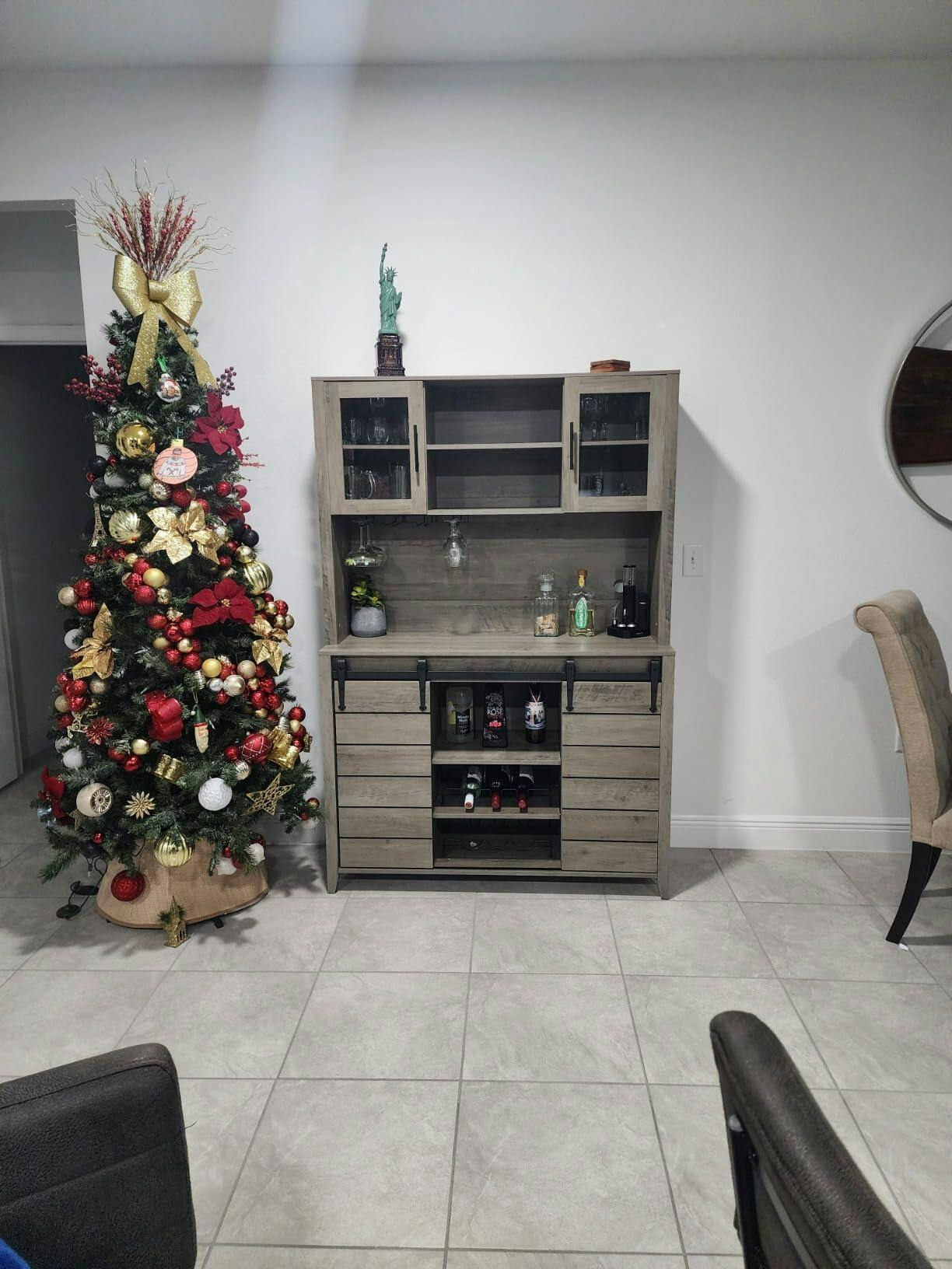 - Farmhouse Sliding-Door Design: Dual barn doors save space and add rustic charm. Functions as a wine bar, sideboard, coffee station, microwave stand, and more.