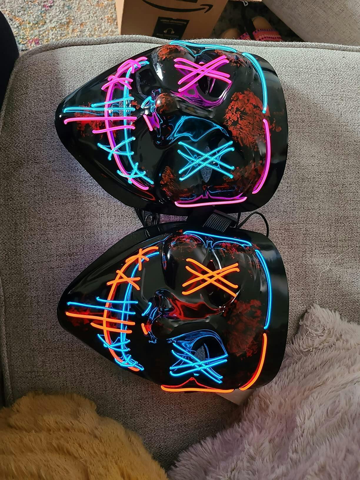Garvee Purge Mask, 2 Pack Light up Mask LED Mask, Scary Masks, Glow Neon Mask Costume Mask with 3 Lighting Modes for Halloween Festival Party