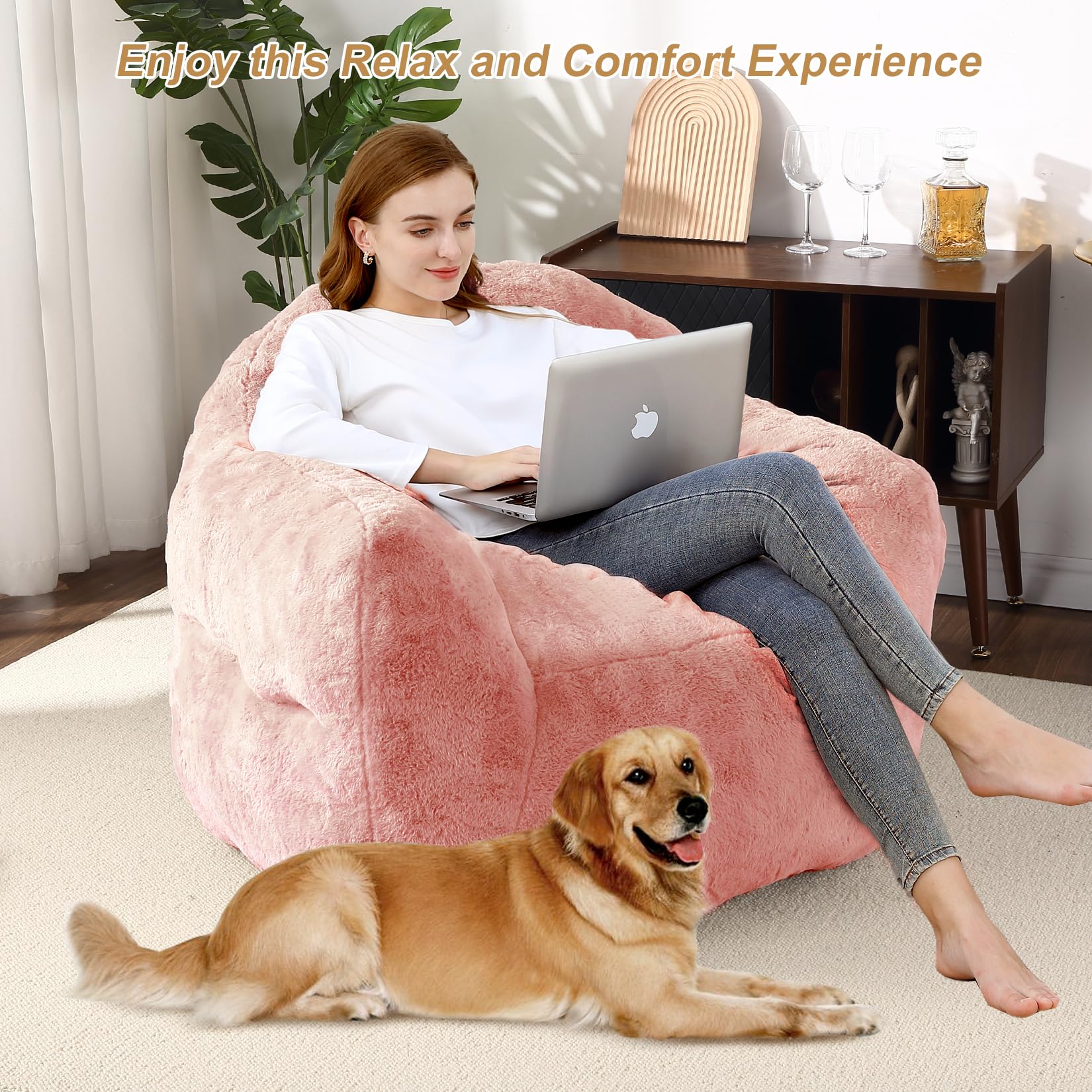 Garvee Giant Bean Bag Chair Sofa 37.5LB High-Density Foam Filled with Armrests, Faux Fur, Ergonomic Design, Non-Slip, Easy to Clean, Living Room