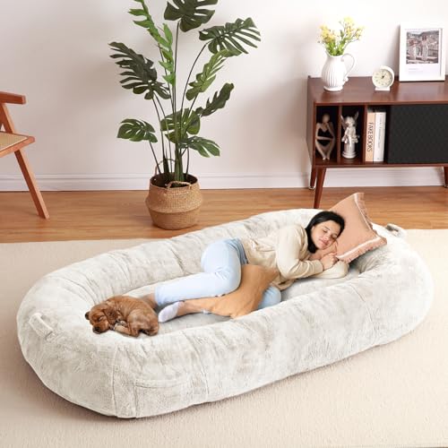 With its washable cover, plush filling, and spacious design, this human-sized dog bed combines practicality with comfort. The durable construction ensures long-lasting use for both you and your furry friend.