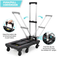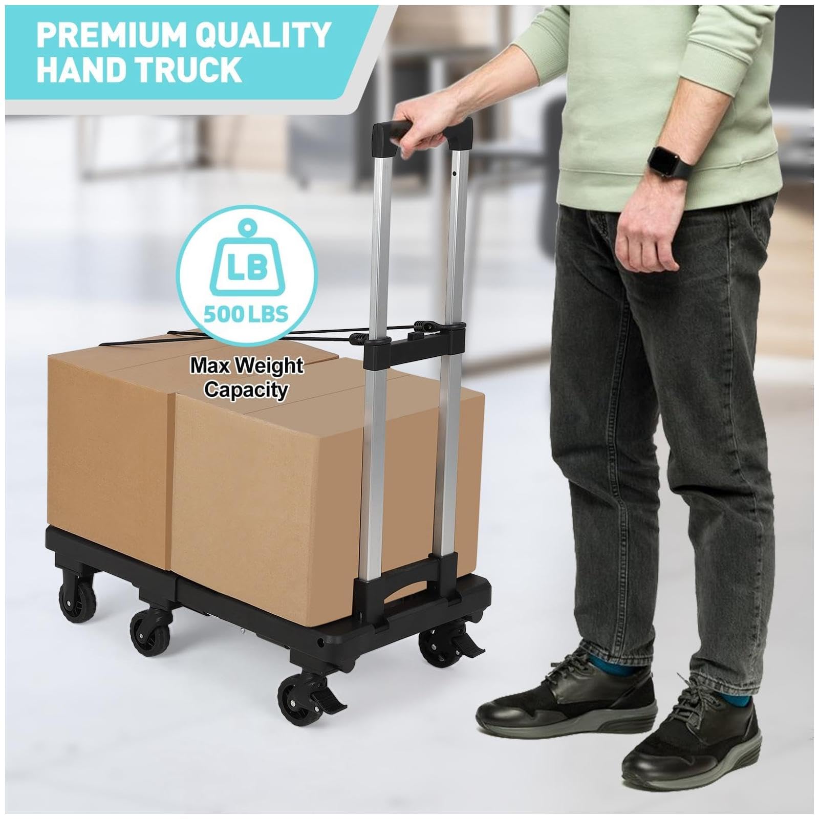 Garvee Folding Hand Truck 500 Lb Capacity Collapsible Dolly Cart with 6 Wheels & 2 Elastic Ropes PP Base Adjustable Handle for Moving, Travel, Shopping, Home, Office