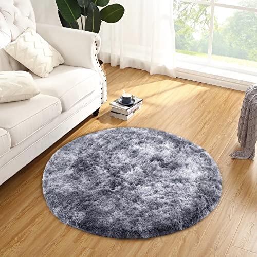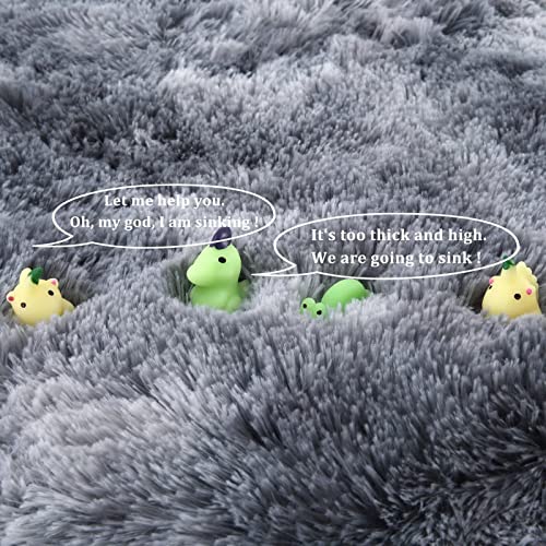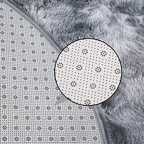 Garvee Fluffy & Sheepskin Dark Grey 4-Round Shag Rug, Cozy Faux Fur Non-Slip for Bedroom Kids Room Carpet