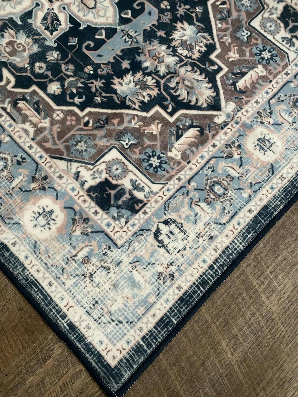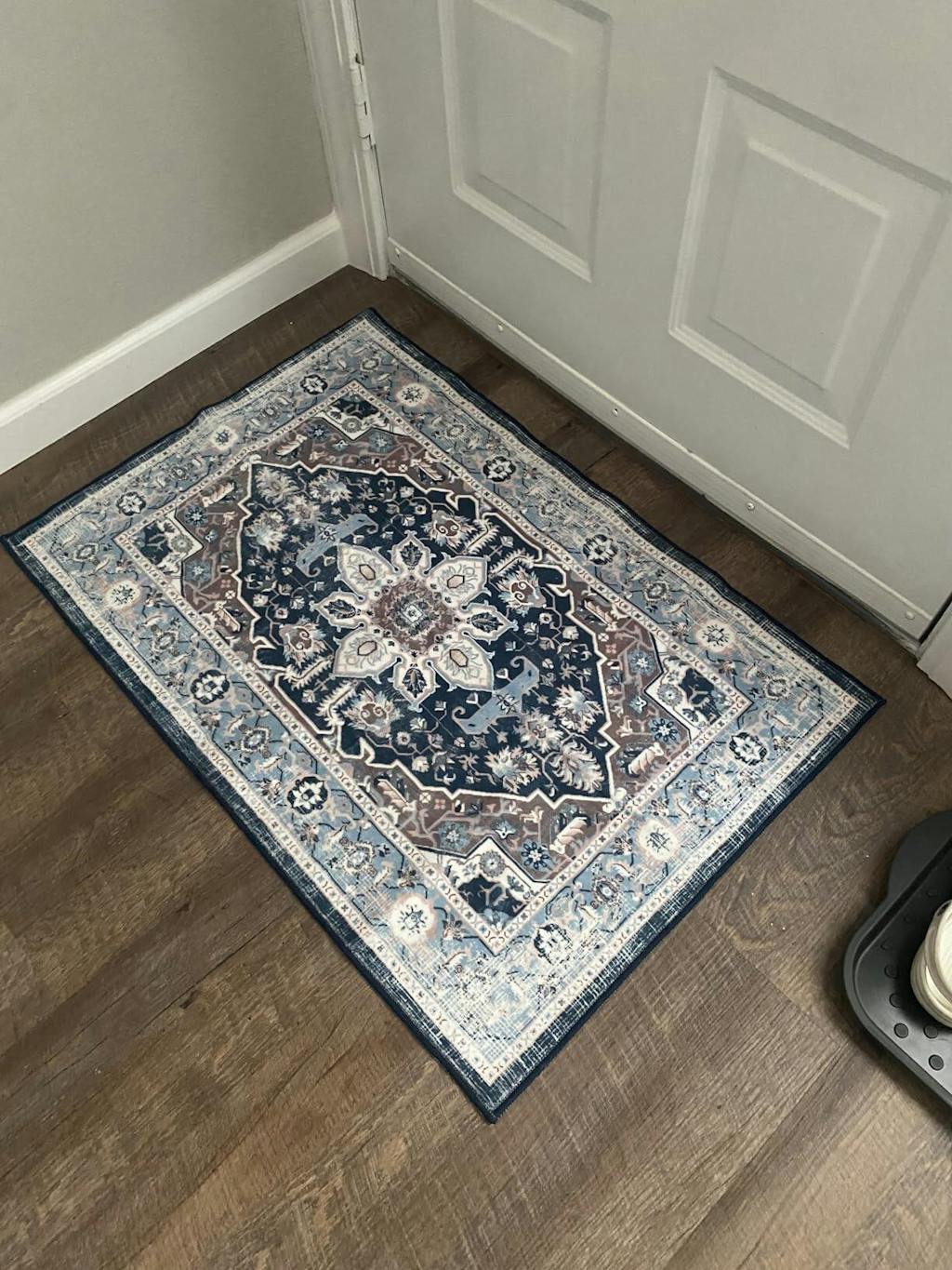 Garvee Small Area Rug 2x3 Vintage Entryway Rug Indoor Print Distressed Carpet Non Slip Washable Rug Foldable Accent Rug Lightweight Kitchen Bathroom Living Room, Navy, 2’x3’