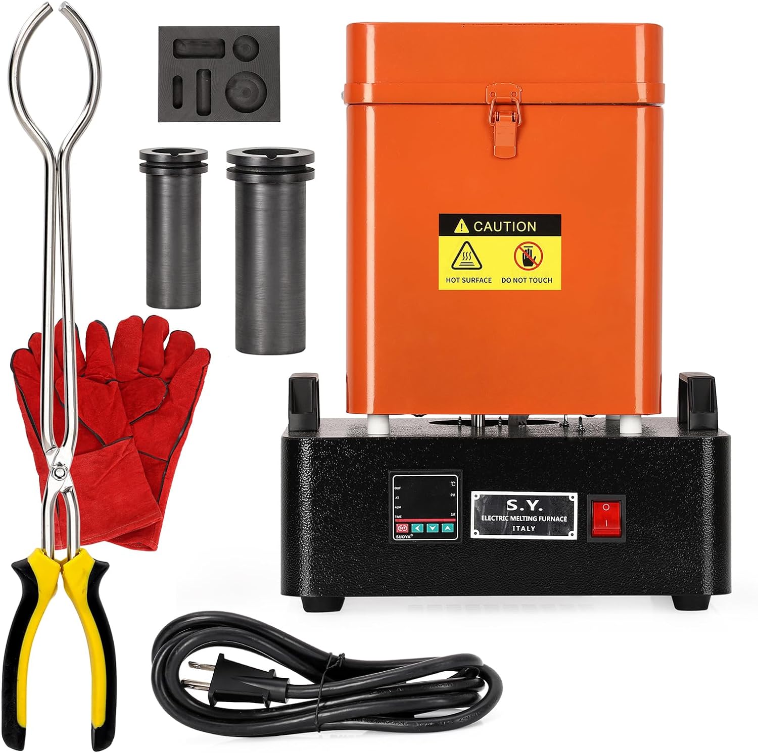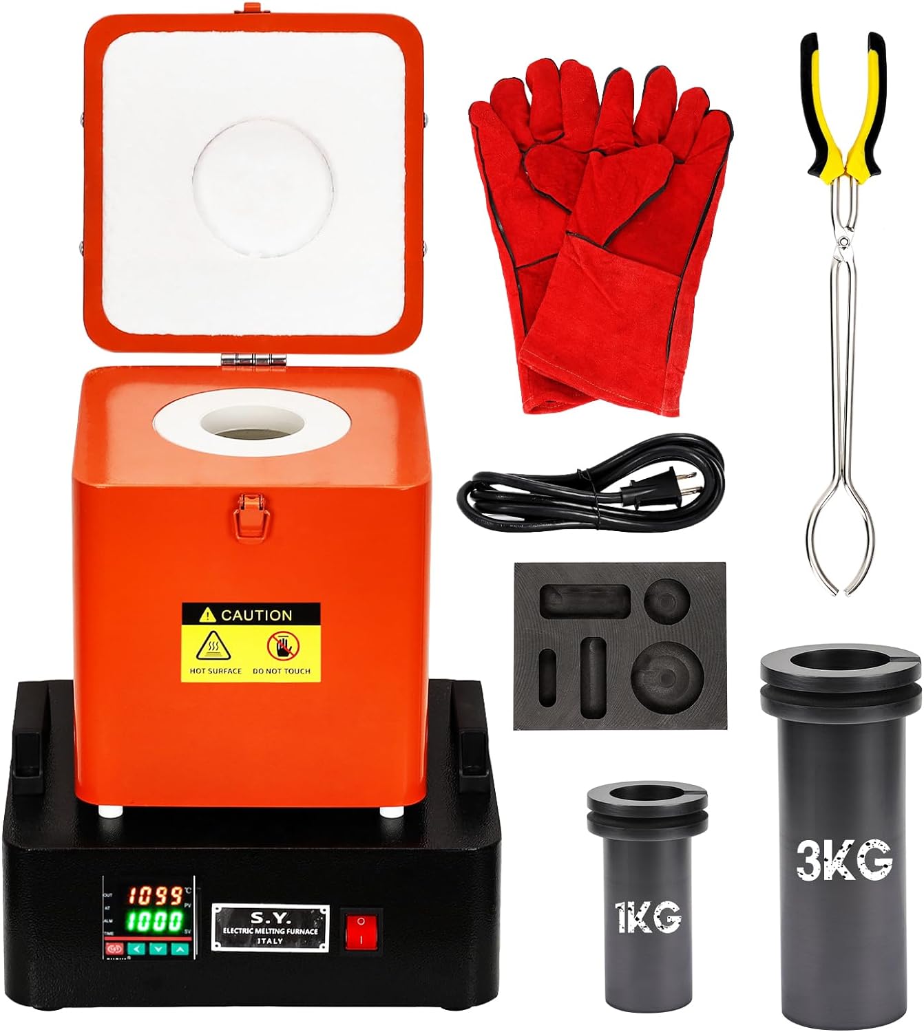 Garvee 1+3 KG Gold Melting Furnace Set,2100 °F Digital Electric Melting Furnace with 2 Crucibles,Temperature Control for Melt Scrap, Silver, Gold, Copper, Aluminum 110V