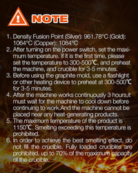 - Fast melting with 1500W power and max temperature of 1150℃/2100°F