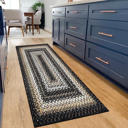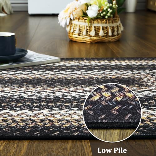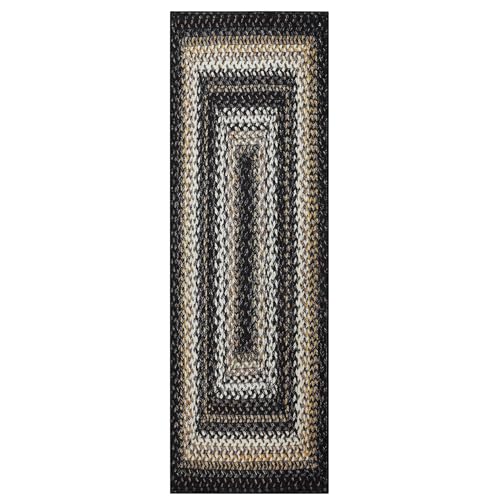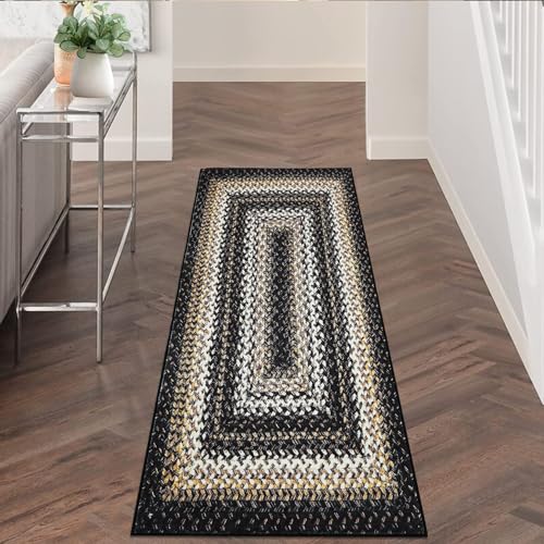 Garvee Bordered Black Multi 2x6 Hallway Runner Rug Braided Printed Runner Rug Washable Rug Boho Runner Rug Modern Geometric Rug Rustic Floor Cover Runner for Entryway Laundry Living Room Bedroom Kitchen