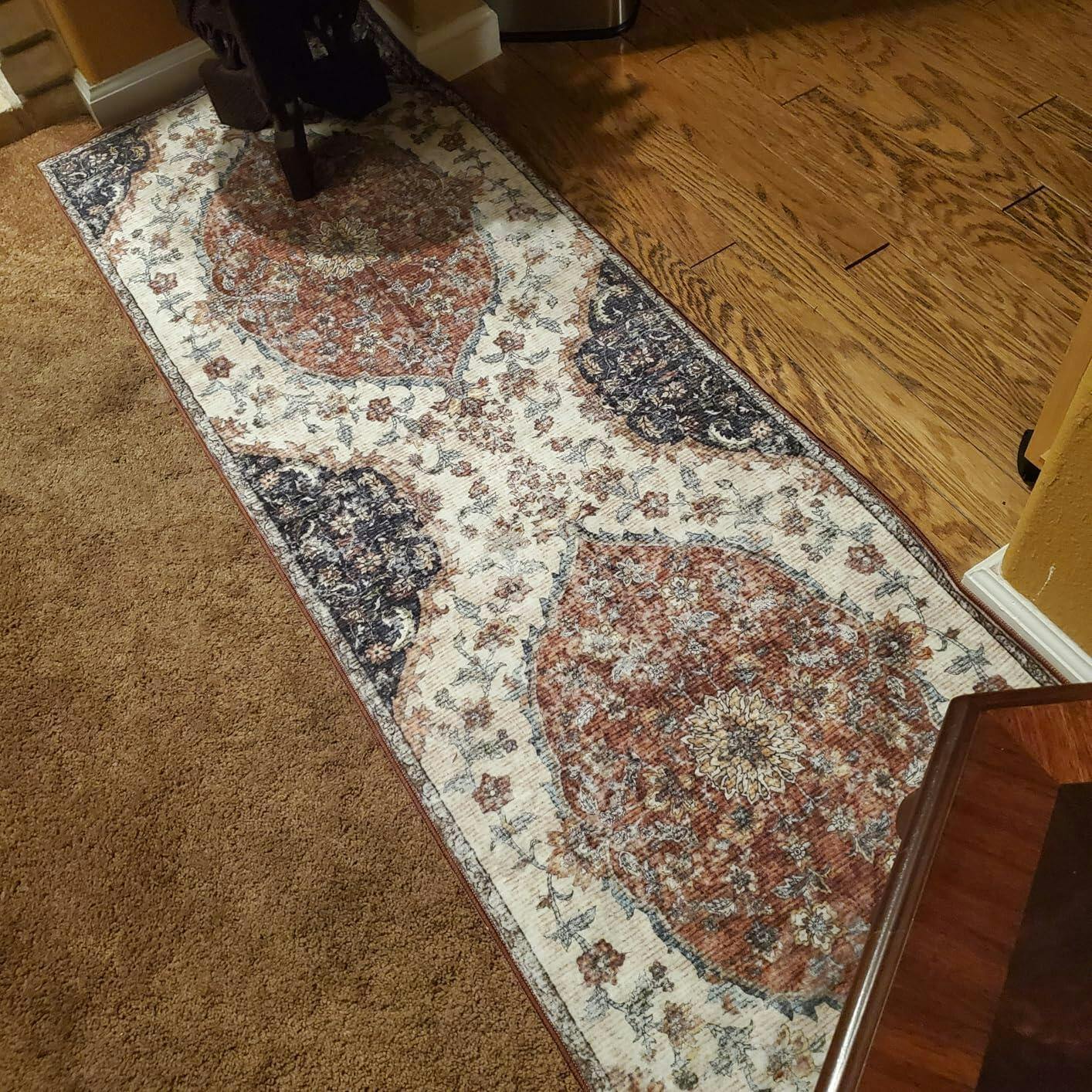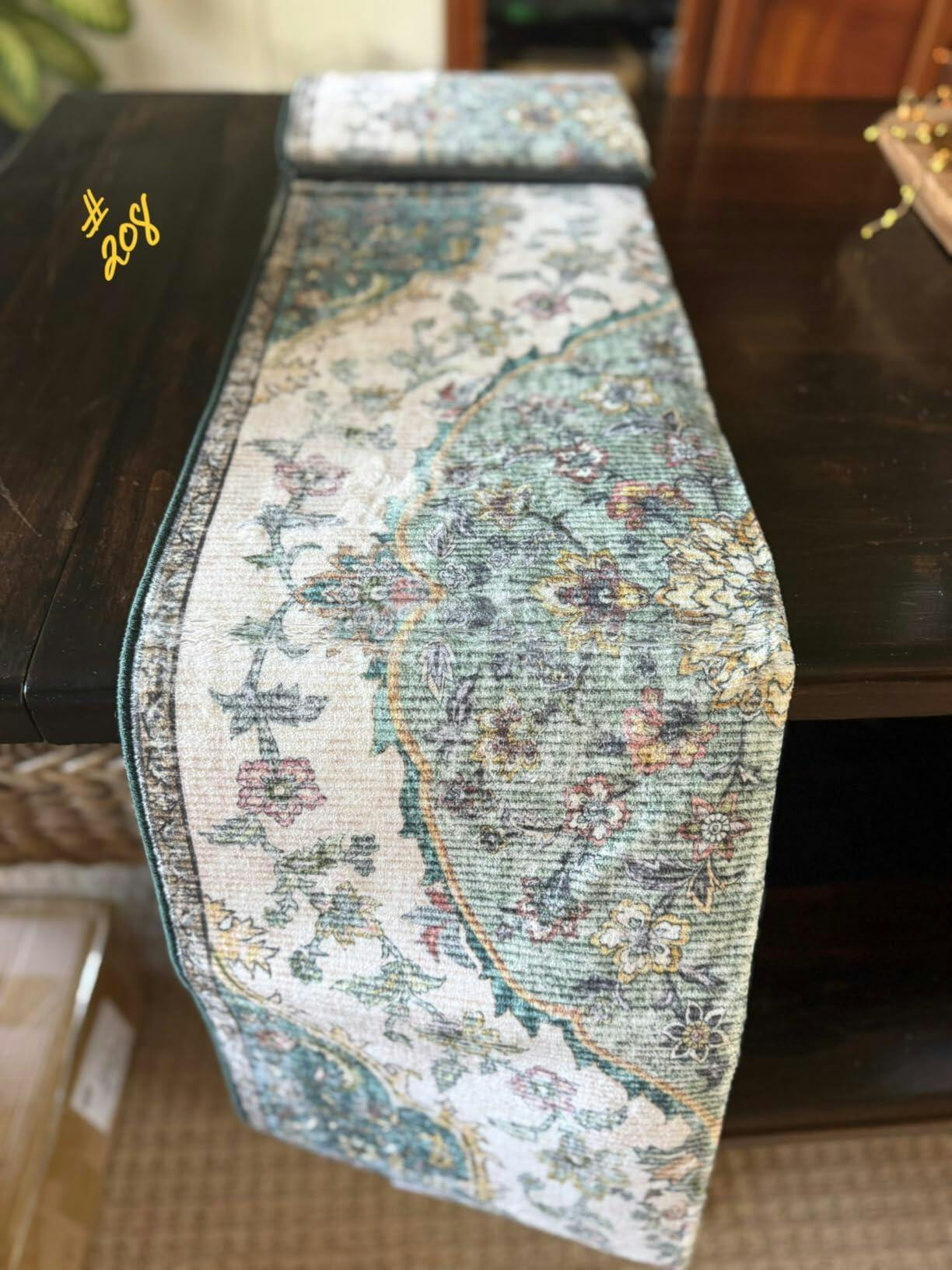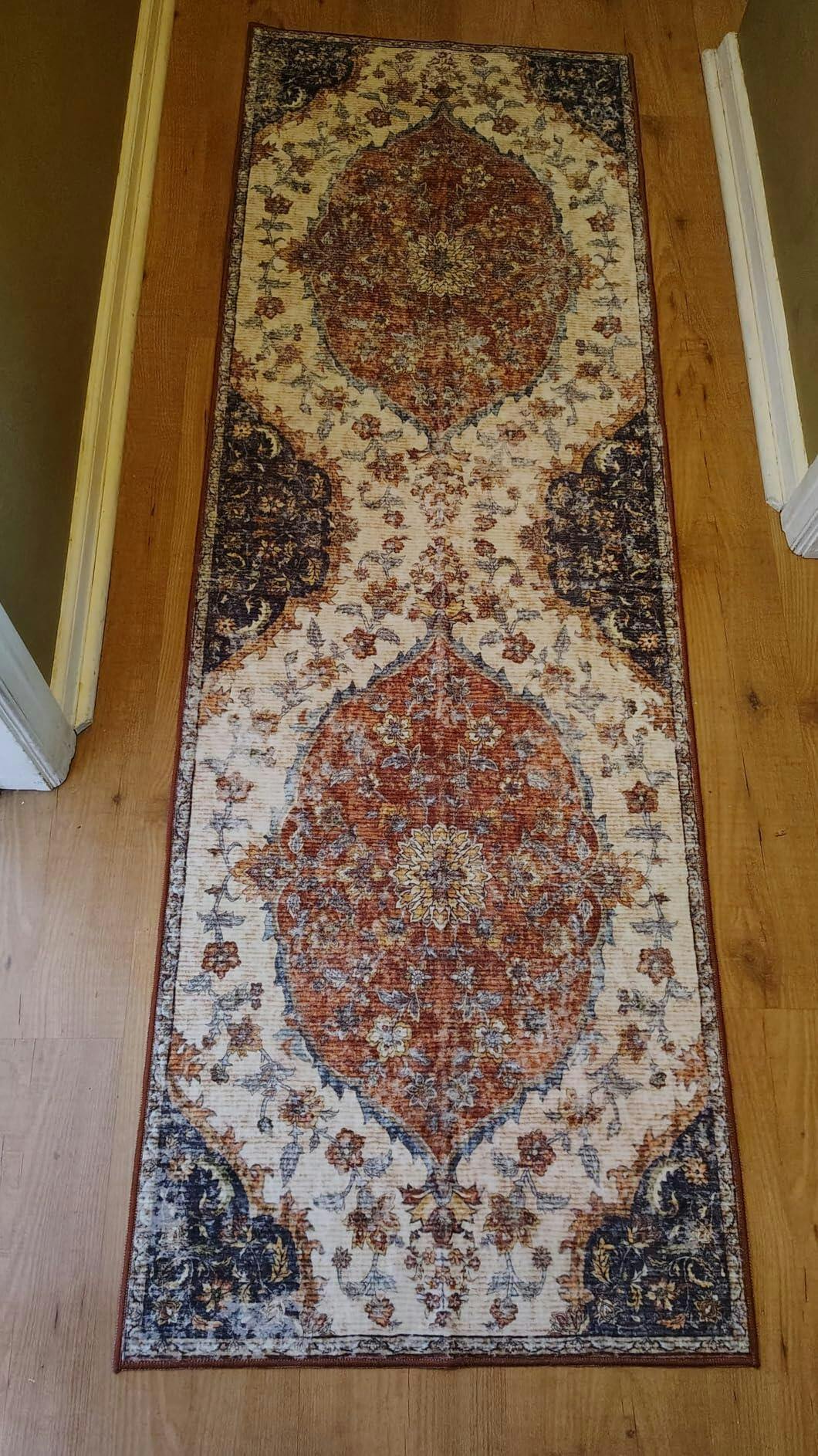 Garvee Hallway Runner Rug 2x6 Low Pile Machine Washable Vintage Floral TPR Non-Slip Backing Green Kitchen Bedroom Bathroom