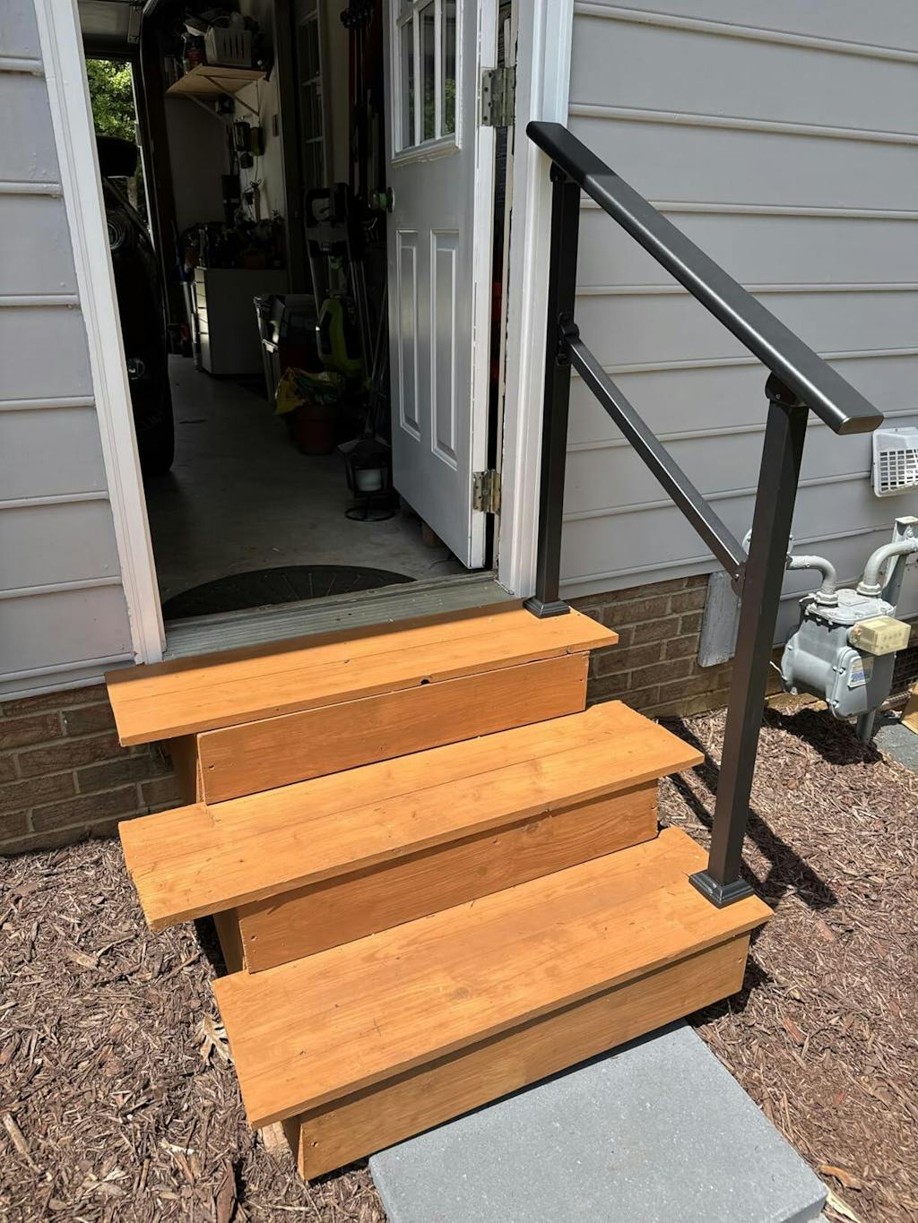 - FLEXIBLE HEIGHT & ANGLE: Our handrails for outdoor steps feature an adjustable height and angle, making them perfect for a variety of step heights and outdoor stair configurations.