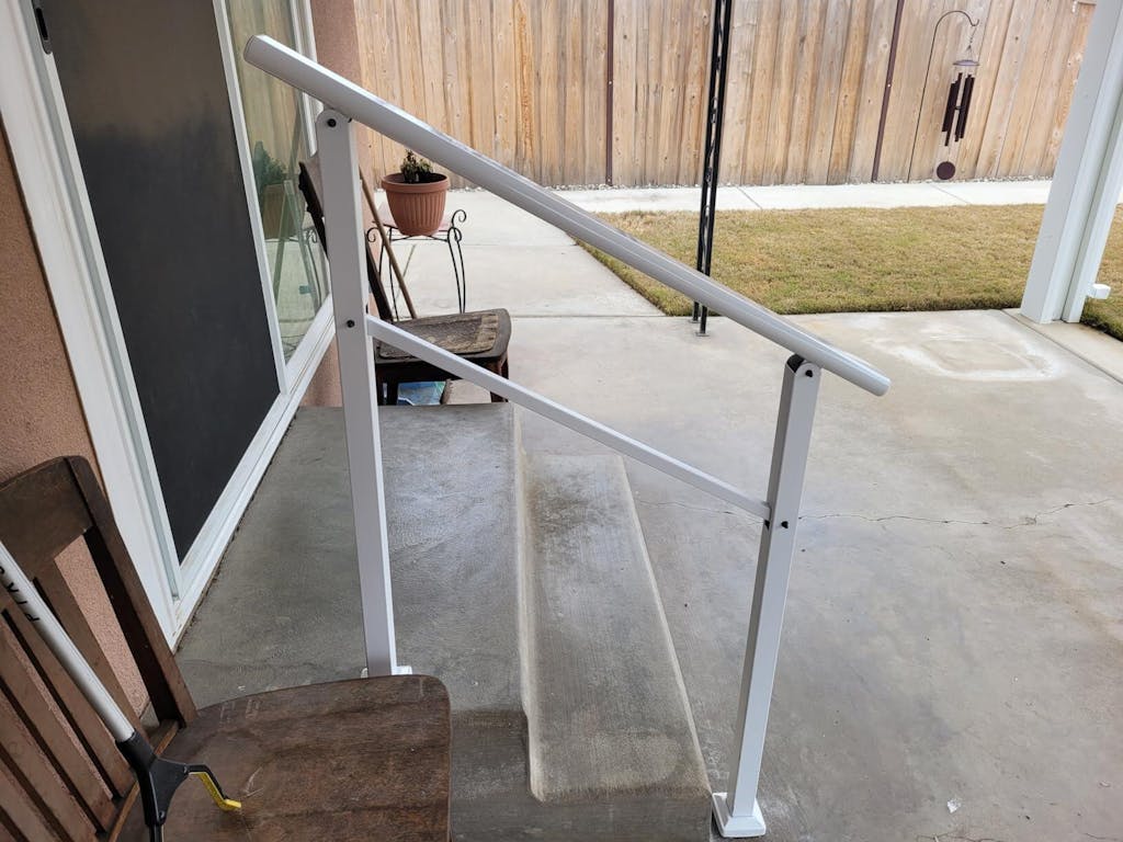 - DURABLE & ALL-WEATHER RESISTANT: Designed to withstand the elements, these outdoor railings for steps feature a weatherproof coating that resists rust, fading, and scratches, ensuring your handrails stay looking great year-round.