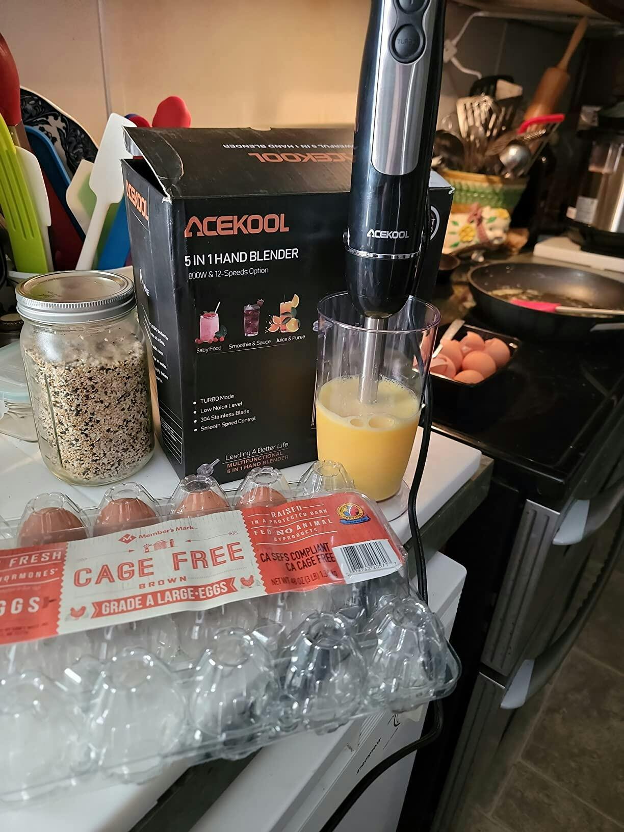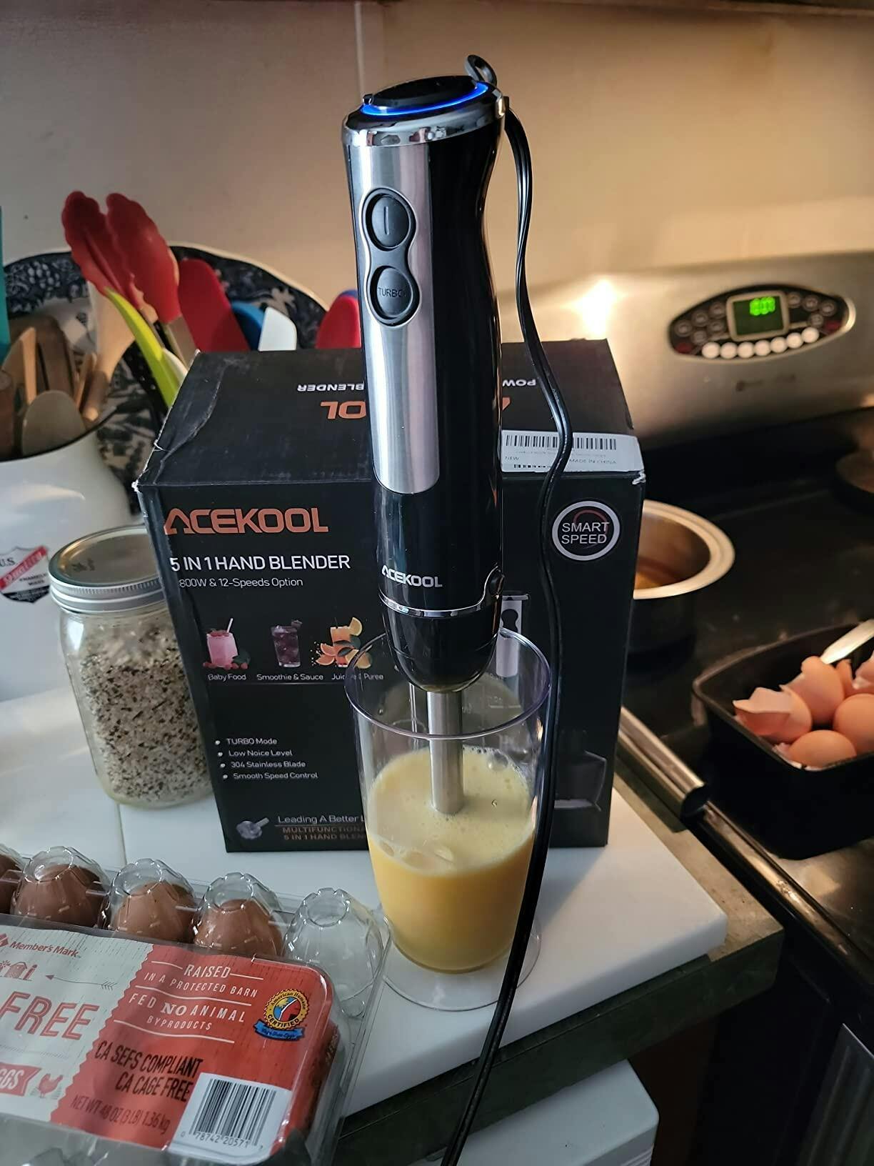 - 5-in-1 Multi-function: This stainless steel blender set includes 1 egg beater, 1 500ml container, 1 600ml measuring cup, 1 milkshake stick, 1 stirring head, which allows you to make juice, smoothies, soups, protein shakes, coffee, etc. Baby food, porridge needs, food processing is easier! (BPA free)