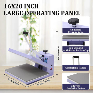 16×20 Large Work Surface, Stable Adjustable Pressure
