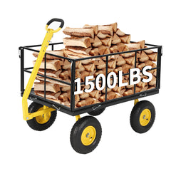 Garvee Heavy Duty 1500 lbs Steel Garden Cart – 3-in-1 Outdoor Utility Wagon with Removable Mesh Sides, 13" All-Terrain Wheels, 180° Rotating Handle – Lawn, Soil, Tool & Plant Carrier – 13-inch wheels, black hubs + yellow frame + black handlebars