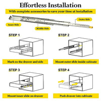 - ✅【Softly & Quietly Slide with Lock】Featuring a lock-in these slides offer a secure fixation, easy control, and prevent the drawer from separating from the cabinet. Our Dual Locking Drawer Slides provide enhanced security and stability. The double row of ball-bearing action ensures a smooth sliding performance when opening and closing the drawer. The middle-section slides are equipped with a nylon buffer design, resulting in less noise and no bounce back.
