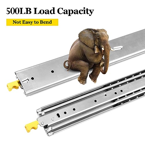 Garvee Heavy Duty Drawer Slides, 18 20 22 24 26 28 30 32 34 36 38 40 44 48 60 Inch 500 Lbs Load Capacity Drawer Slides, Ball Bearing Lock-in & Lock-Out, 3-Fold Full Extension with Lock