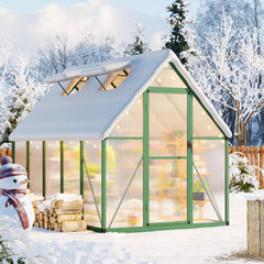 Garvee Heavy Duty 6x9 FT Polycarbonate Walk-In Greenhouse - Aluminum Frame, Lockable Door, Roof Vent, Ground Stakes, Easy Setup for Garden, Lawn, Green