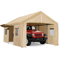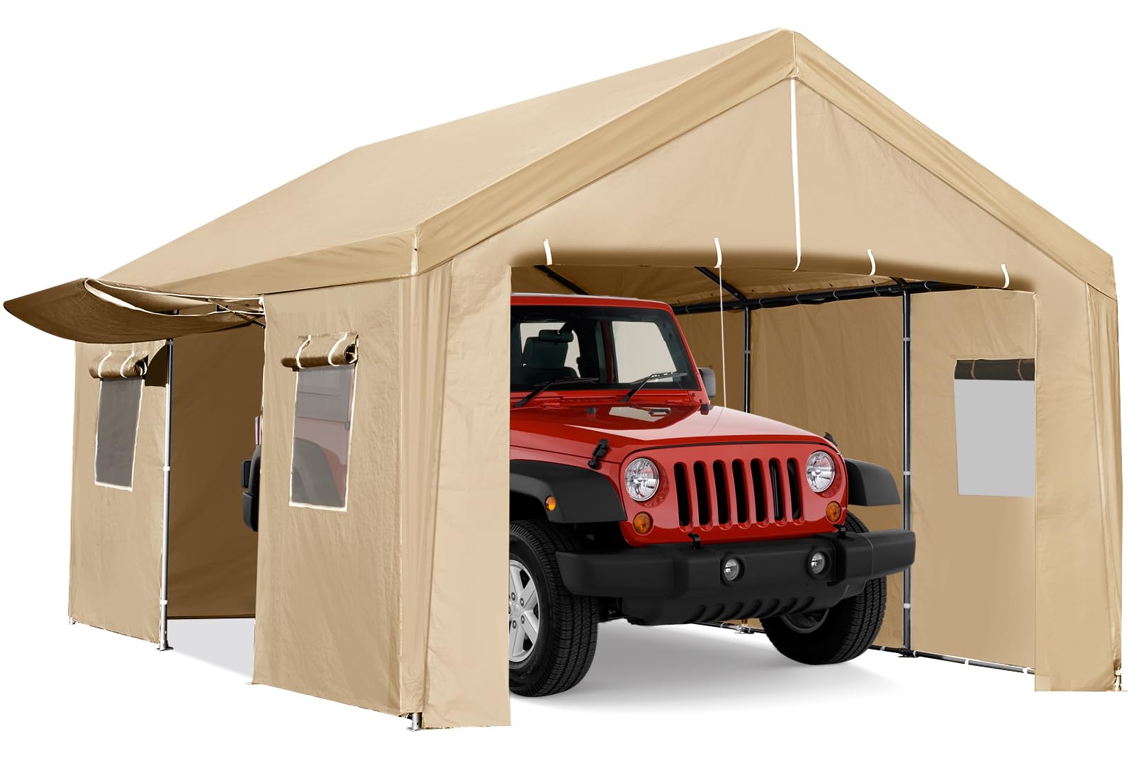 Garvee 10'x20' Carport Canopy, Portable Garage with Zipper Door, Ventilated Windows & Removable Sidewalls for Truck, Boat, Grey