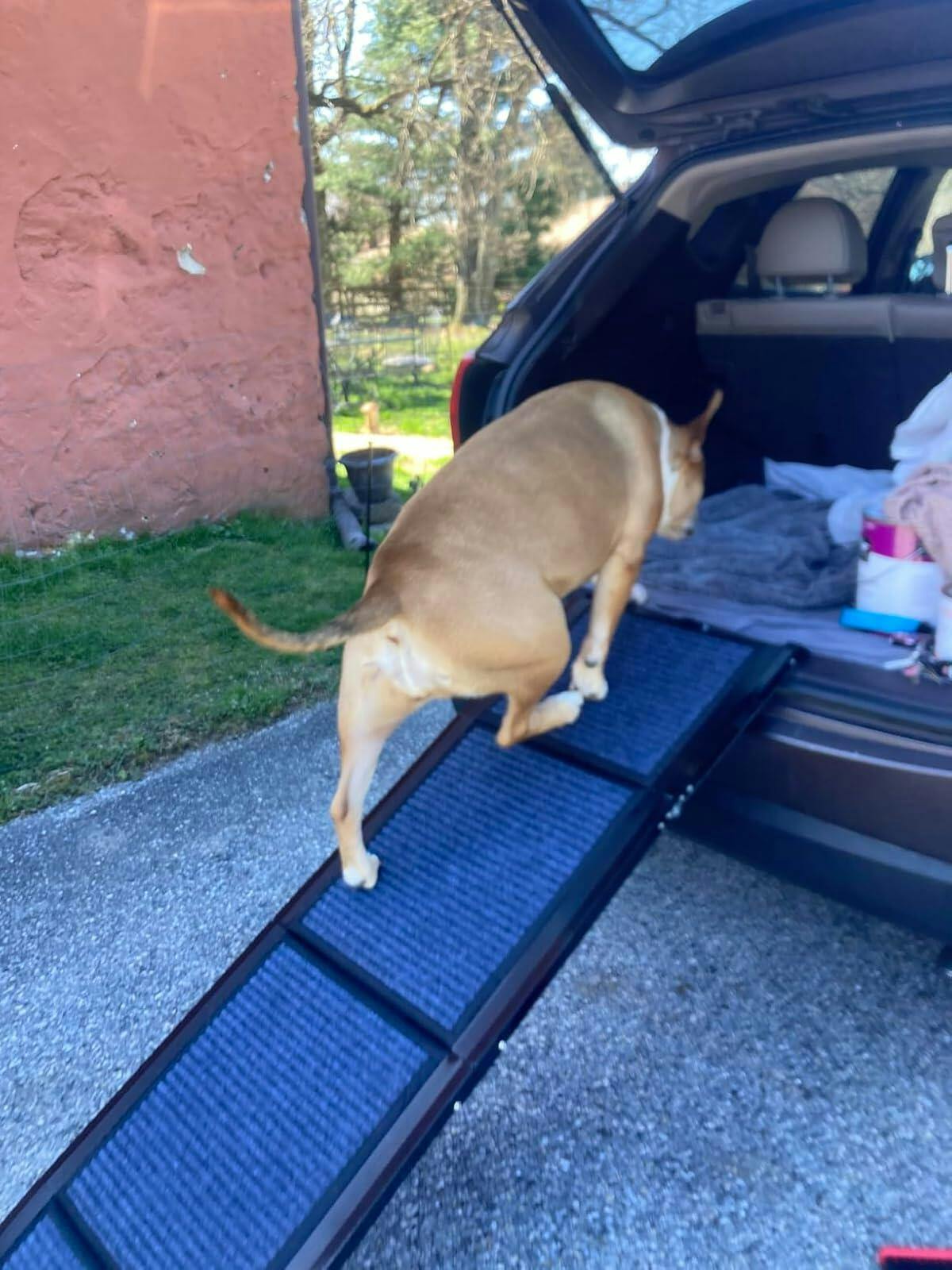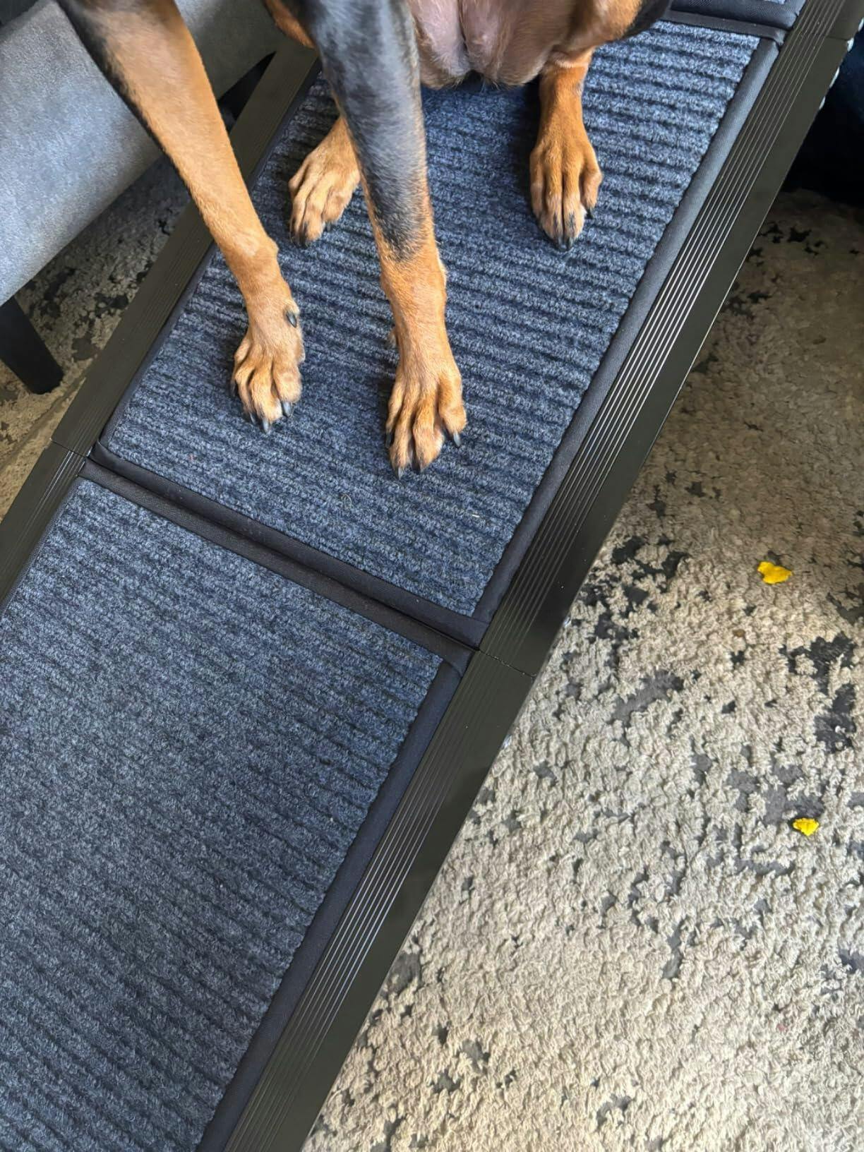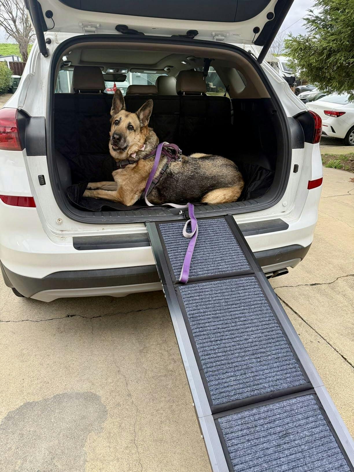 I’m so glad that I bought this ramp. My dog has joint issues, so this ramp is perfect for helping her get in and out of the car with ease. It’s incredibly stable and well-designed, with a non-slip rug surface that gives him secure footing, even on rainy days. The 71” length and gentle incline make it easy for him to walk up without any hesitation or fear, which was a big concern for us with other ramps. It folds up easily for storage and has made our trips so much smoother and stress-free. Highly recommended for any pet owner!