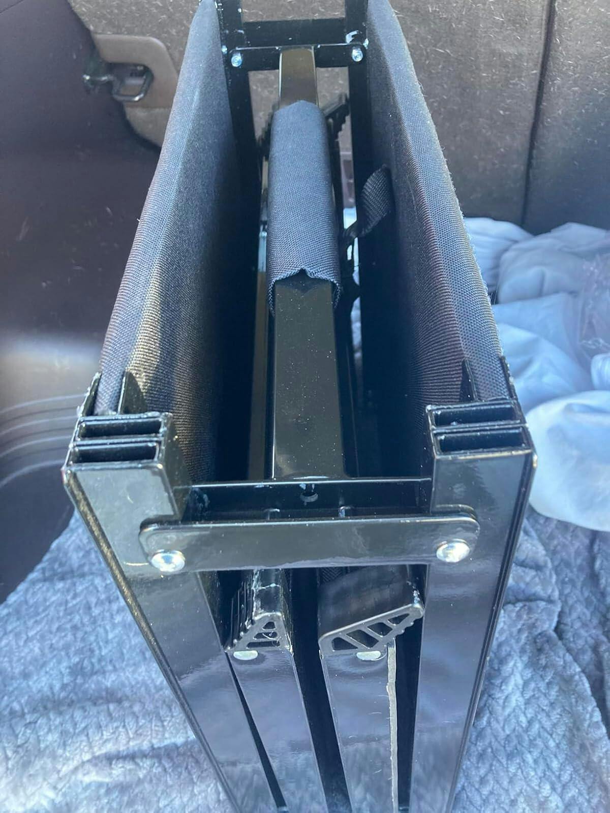 My dog is getting older and she can't jump into the car anymore, and I'm getting older so my back can't handle picking her up. So it was time for a ramp. This ramp impressed me overall with how solid it feels, but also how overall it's still lightweight to handle. I would say my only gripe is the aluminum square tube that makes up the frame construction is sharp, and when you're unfolding the ramp your fingers could get pinched in those sharp corners as it unfolds. I plan to file those down so that the edges aren't sharp, so that in the event something gets pinched it won't cause an injury.