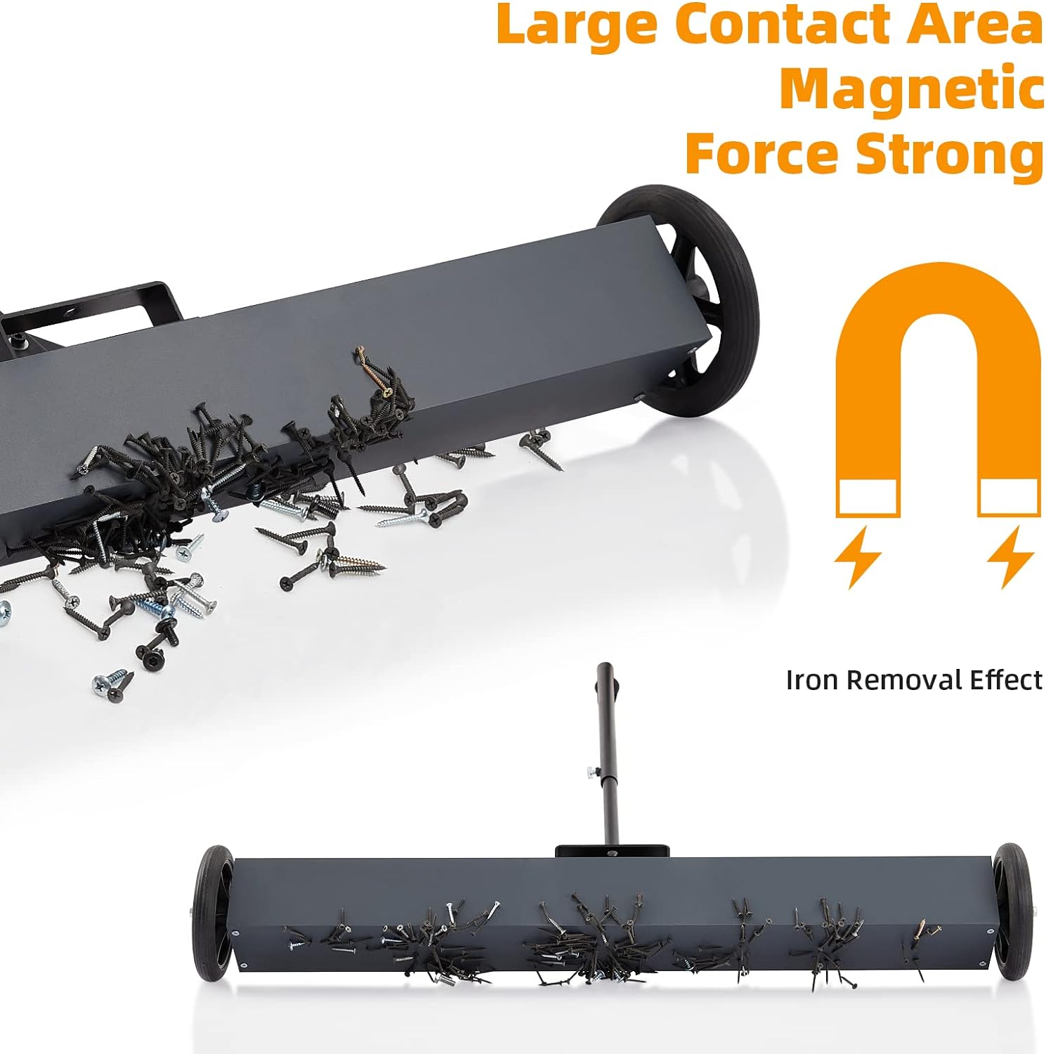 The extra-wide 36-inch magnetic rectangle covers more ground, picking up more metal than smaller sweepers and saving you time and energy.
