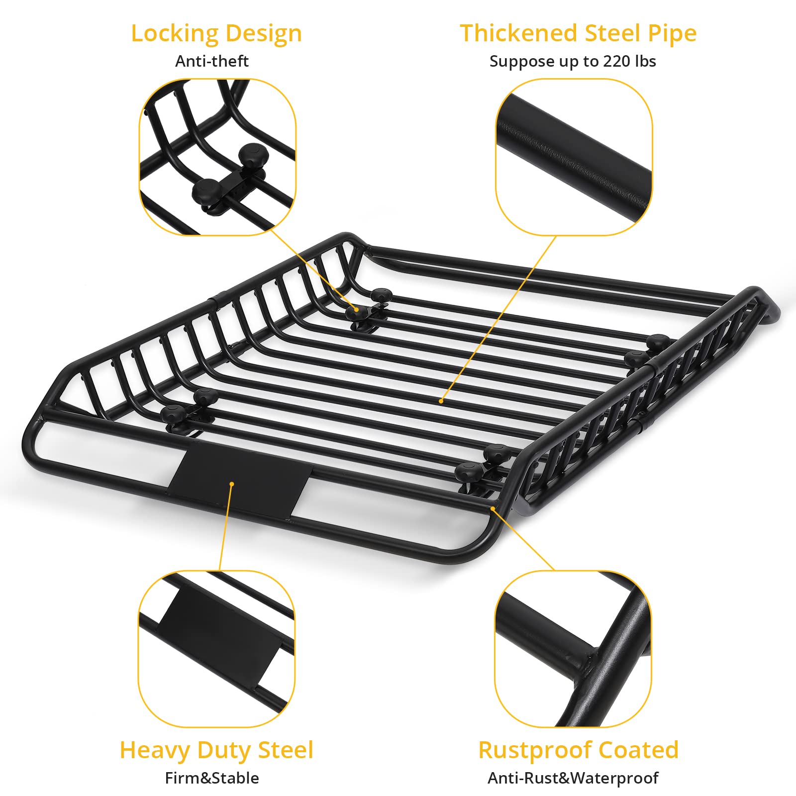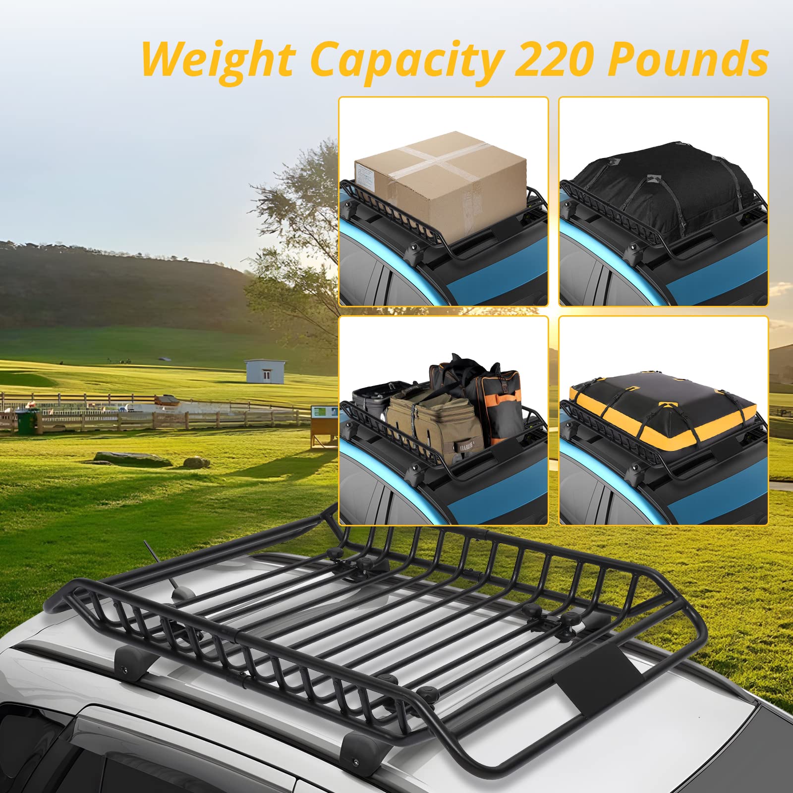 Garvee Heavy Duty Roof Rack Basket 63x43.3x5 Inch Anti-Rust Coating 220lbs Capacity SUV Truck Cars