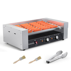 - High-Performance Cooking Experience efficient grilling with our Hot Dog Machine featuring 1050W power and 7 rollers, capable of cooking up to 18 hot dogs at once for quick and even results. Perfect for commercial use.