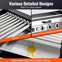 With its dual temperature controls, removable drip tray, and continuous rolling action, this hot dog roller delivers consistent results while maintaining food safety standards.
