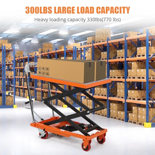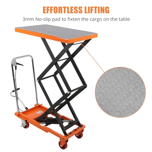 Garvee Hydraulic Lift Table Cart 330lbs Capacity, 49.6" Lifting Height, Double Scissor, 4 Wheels, Non-Slip Pad, Material Handling
