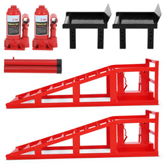 - 【Non-Slip Car Ramps】Special anti-slip surface and bottom pads ensure additional stable support, preventing unexpected sliding during use.5 T hydraulic jack built into each ramp provides greater flexibility,Provide possibilities for larger vehicle maintenance.extended length works great for lowered sports cars that would bottom out on most standard car ramp