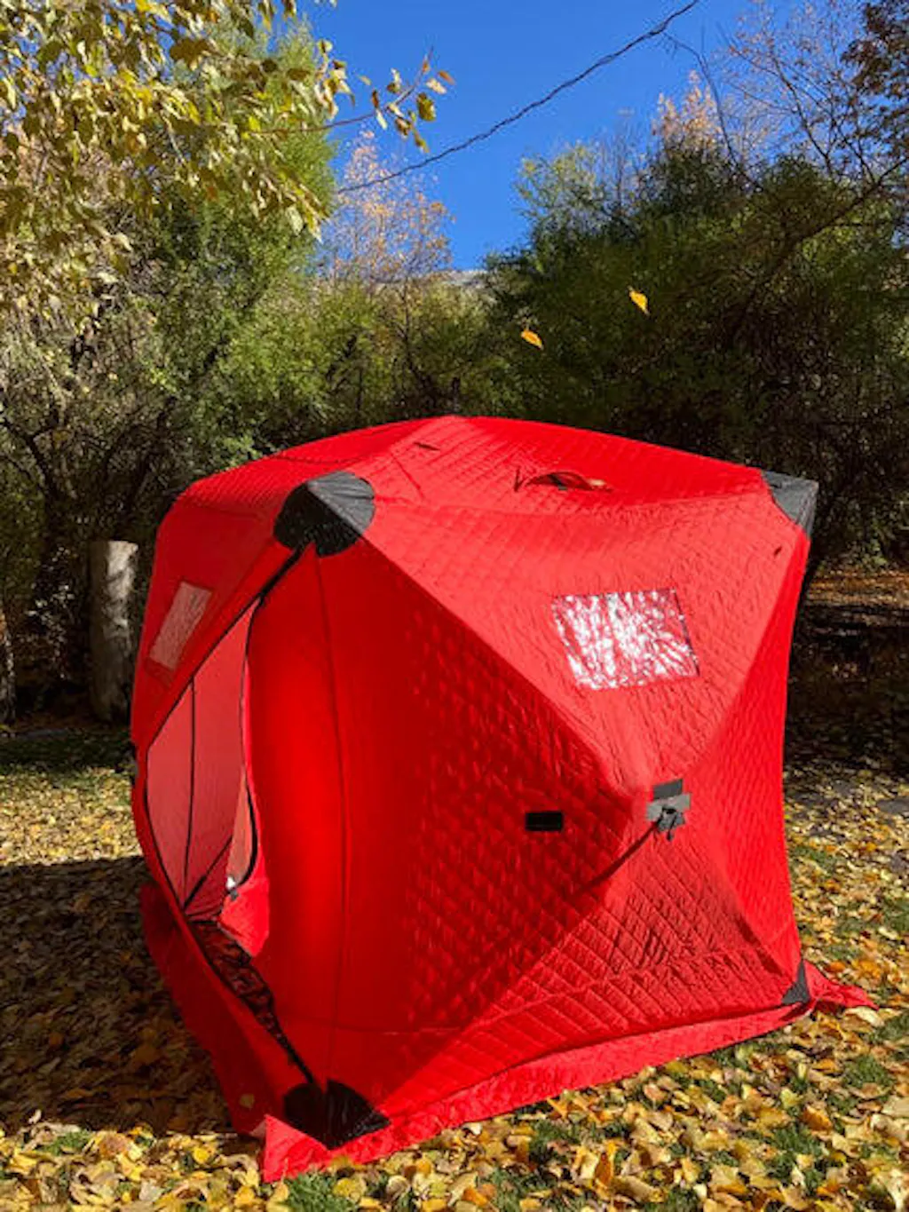 Garvee Ice Fishing Tent, Pop-Up Portable Hub-Style Ice Fishing Shelter, 34 Square Feet of Fishable Area, 3-Person Shelter