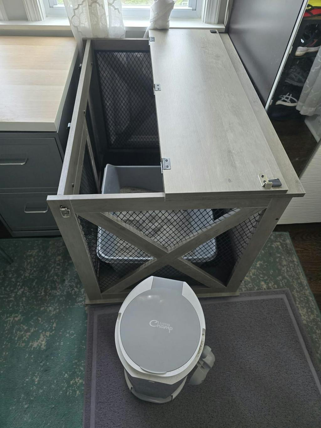 With its durable mesh and PB board construction, flip-up top for easy access, and sleek white finish, this dog crate furniture combines style with practicality. The reinforced structure ensures stability and safety for your pet.