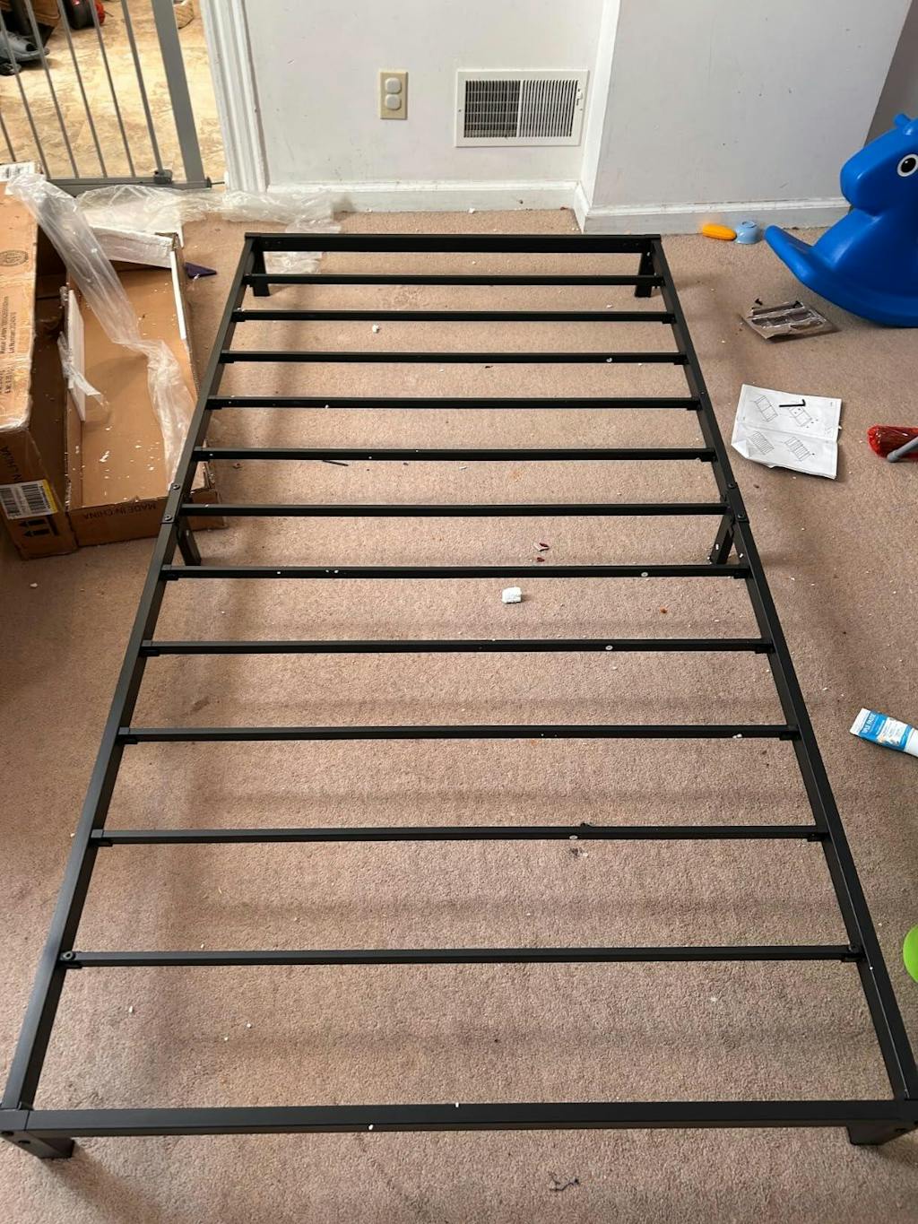 - QUICK ASSEMBLY: Simple to assemble with all necessary hardware, tools, and clear instructions included for a speedy setup. Install this twin metal bed frame in just 20-30 minutes for a hassle-free assembly experience.