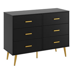 Garvee 6 Drawer Dresser with Storage Space, Modern Wooden Dresser with Gold Handles, Chest Dresser with Deep Drawers for Bedroom, Living Room and Entryway, Black