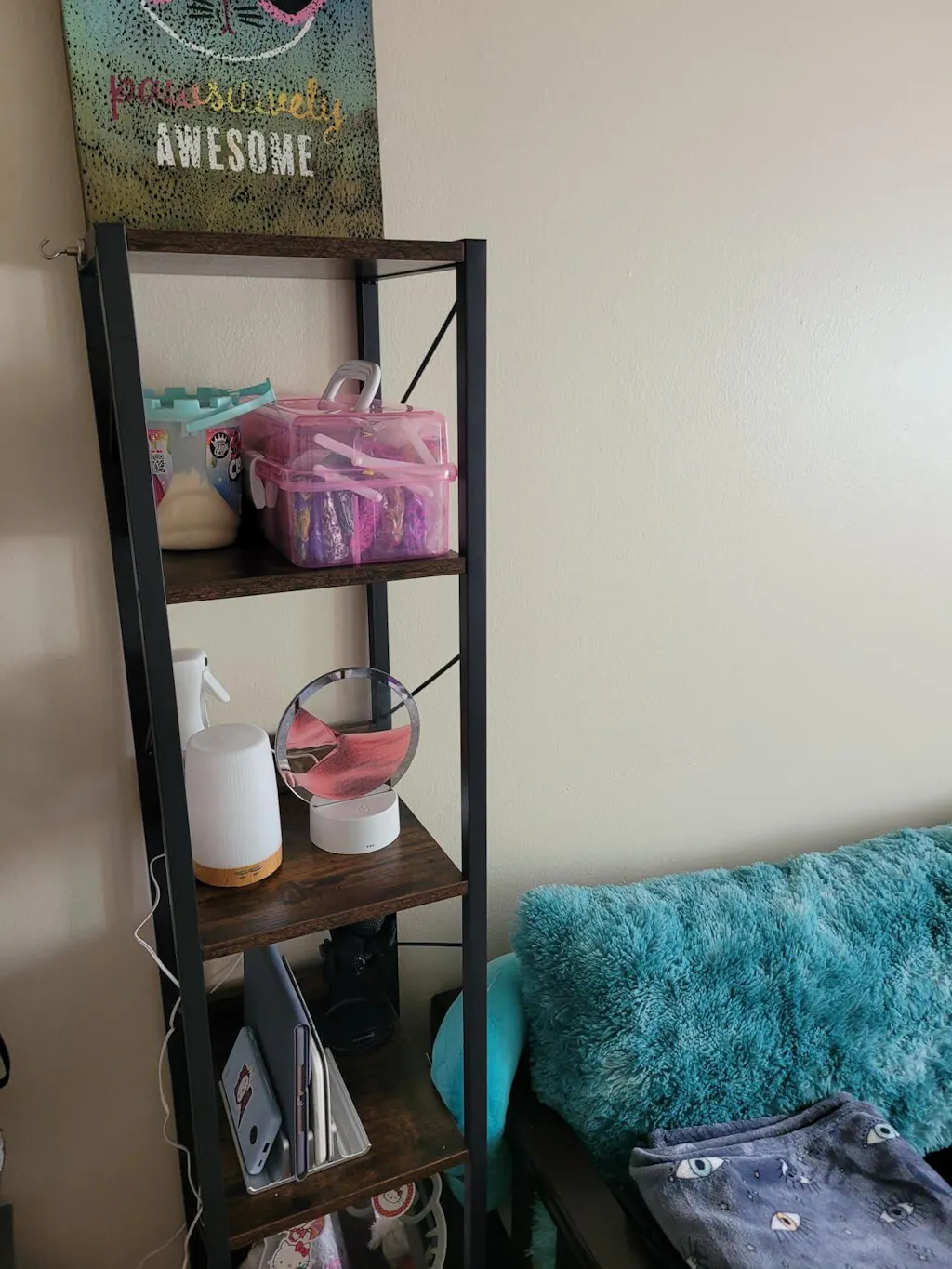Blends rustic charm with modern aesthetics, featuring a sleek metal frame and wood-finish shelves for a stylish industrial look.