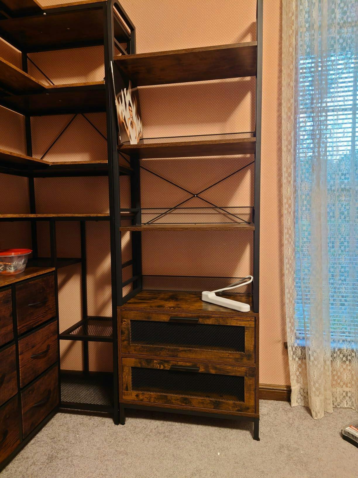 Elevate your storage with the GARVEE Industrial Bookshelf with Drawers