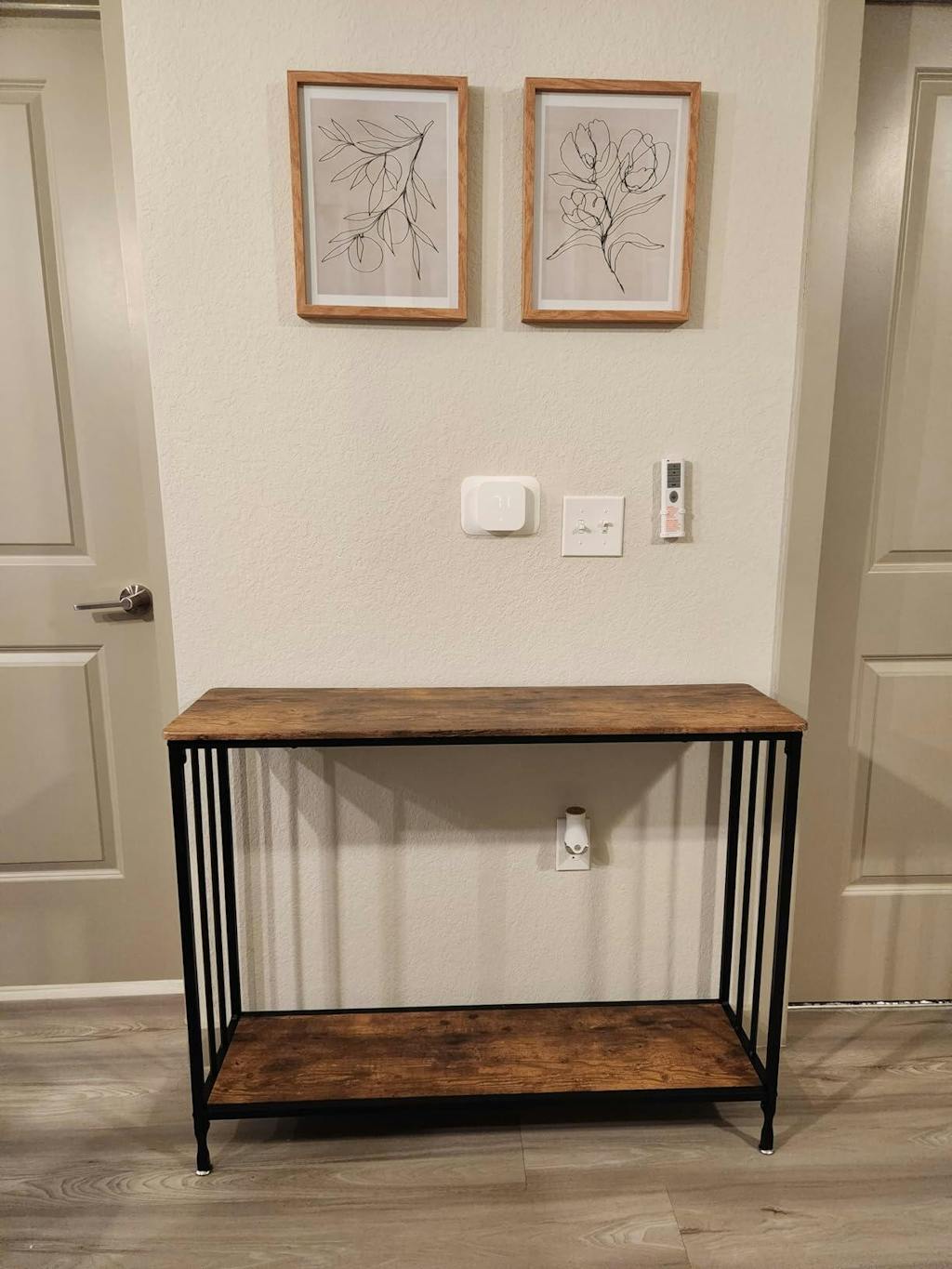 - ✓ EASY to ASSEMBLY: This industrial sofa table with outlet has been checked and is well-packed before shipping. You don't need to worry about assembly, the narrow entryway table comes with detailed installation instructions, parts and accessories are labeled with numbers, and precise holes make installation accurate and fast. 1-2 people can assemble in about 30 minutes. If you have any questions before or after your purchase, you can always email us, and we always reply within 24 hours.