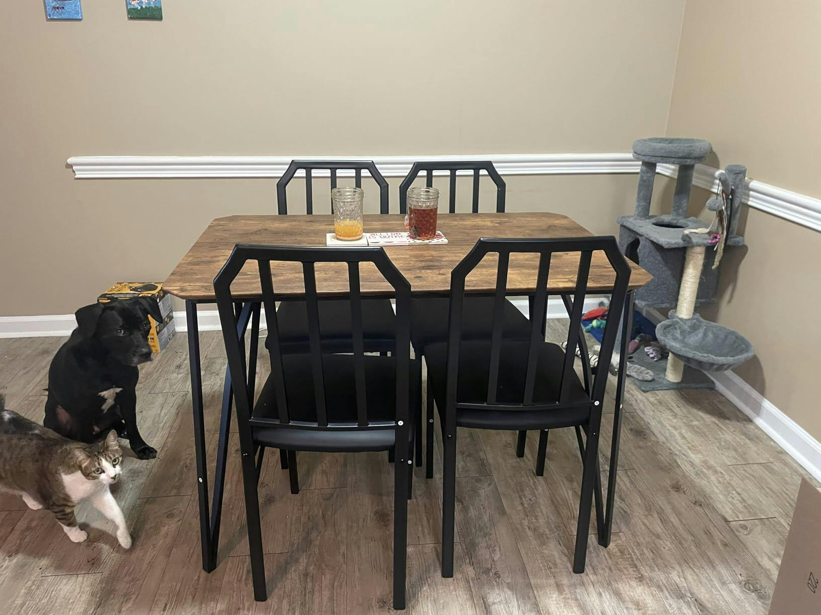- [Sturdy and Durable] Crafted with high-density MDF wood panels and a robust all-metal frame, this kitchen table chairs set of 4 guarantees stability and durability without deformation. The metal surface of the kitchen chairs set is coated with a safe and odorless rust-resistant paint, ensuring long-lasting use without rust or deformation.