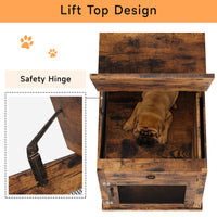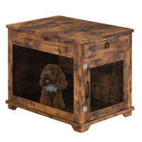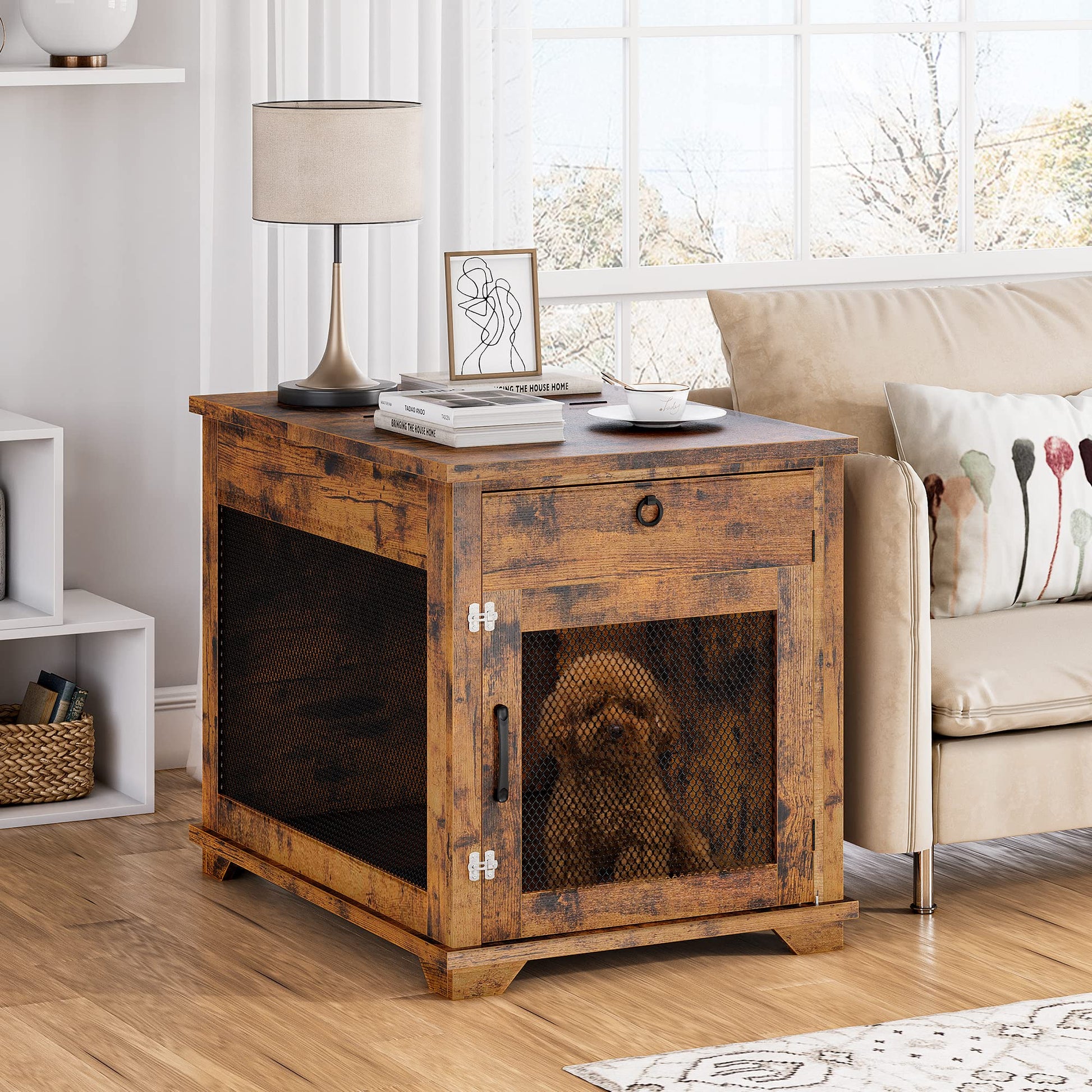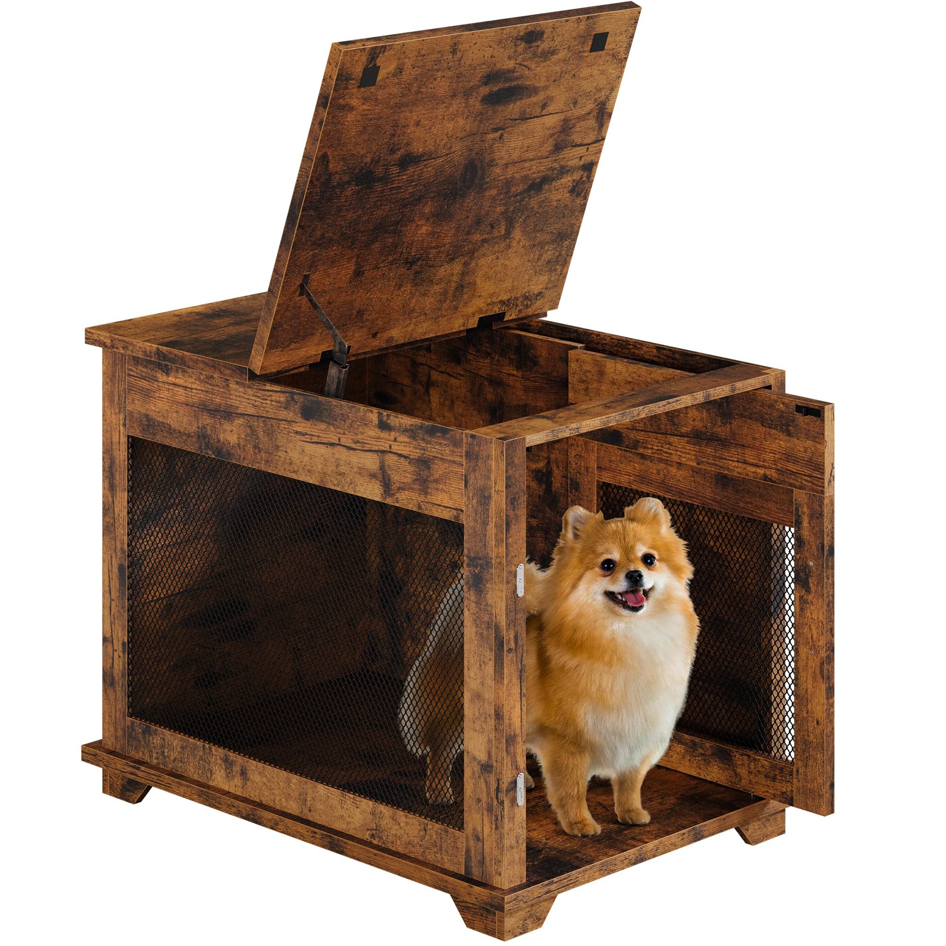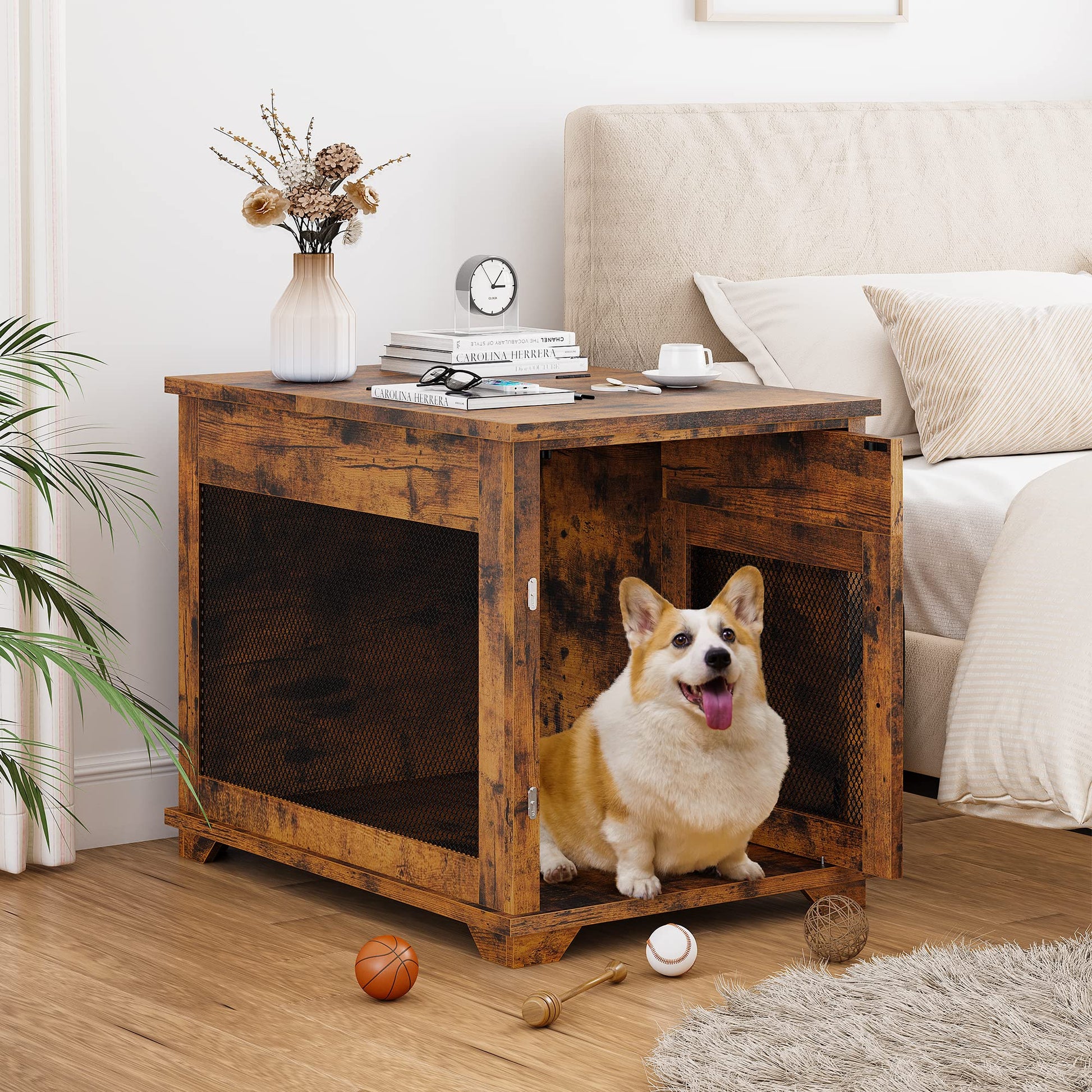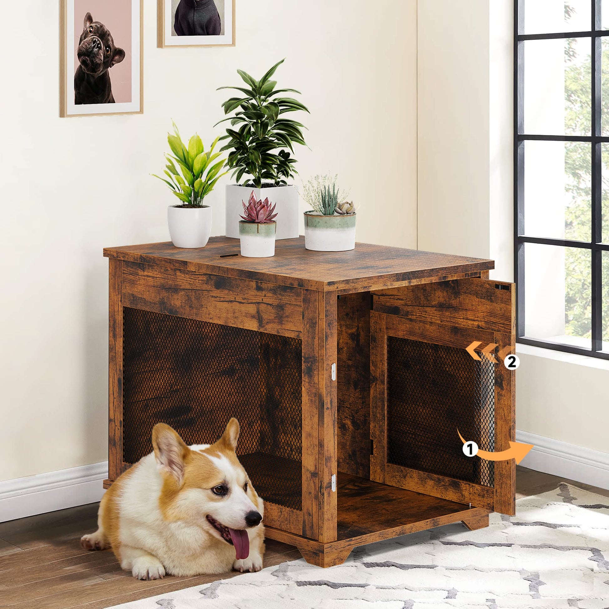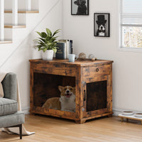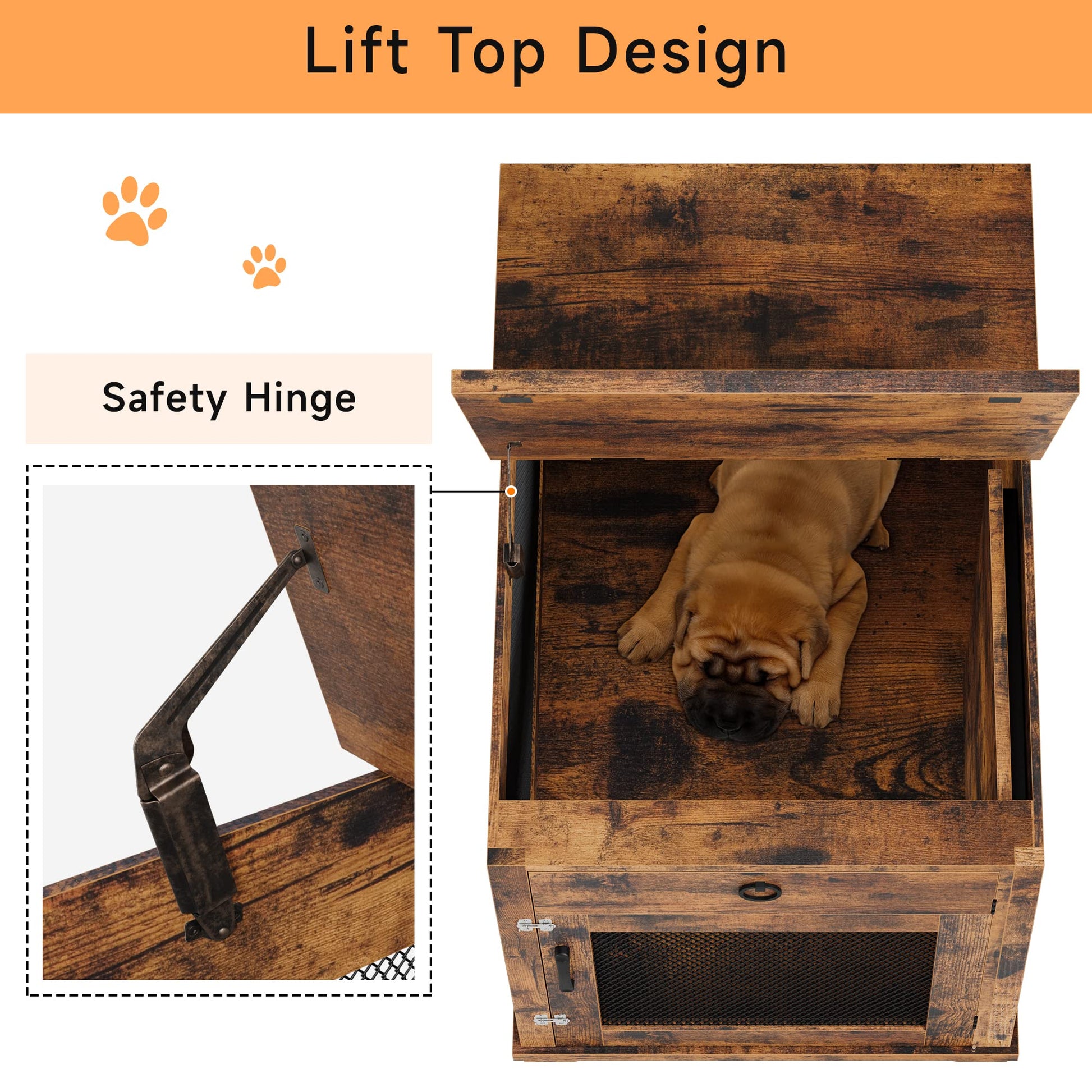 With its rustic brown finish, flip-top design for easy access, and well-ventilated structure, this dog crate combines style with functionality. The lockable end table feature adds an extra layer of security and versatility to your living space.
