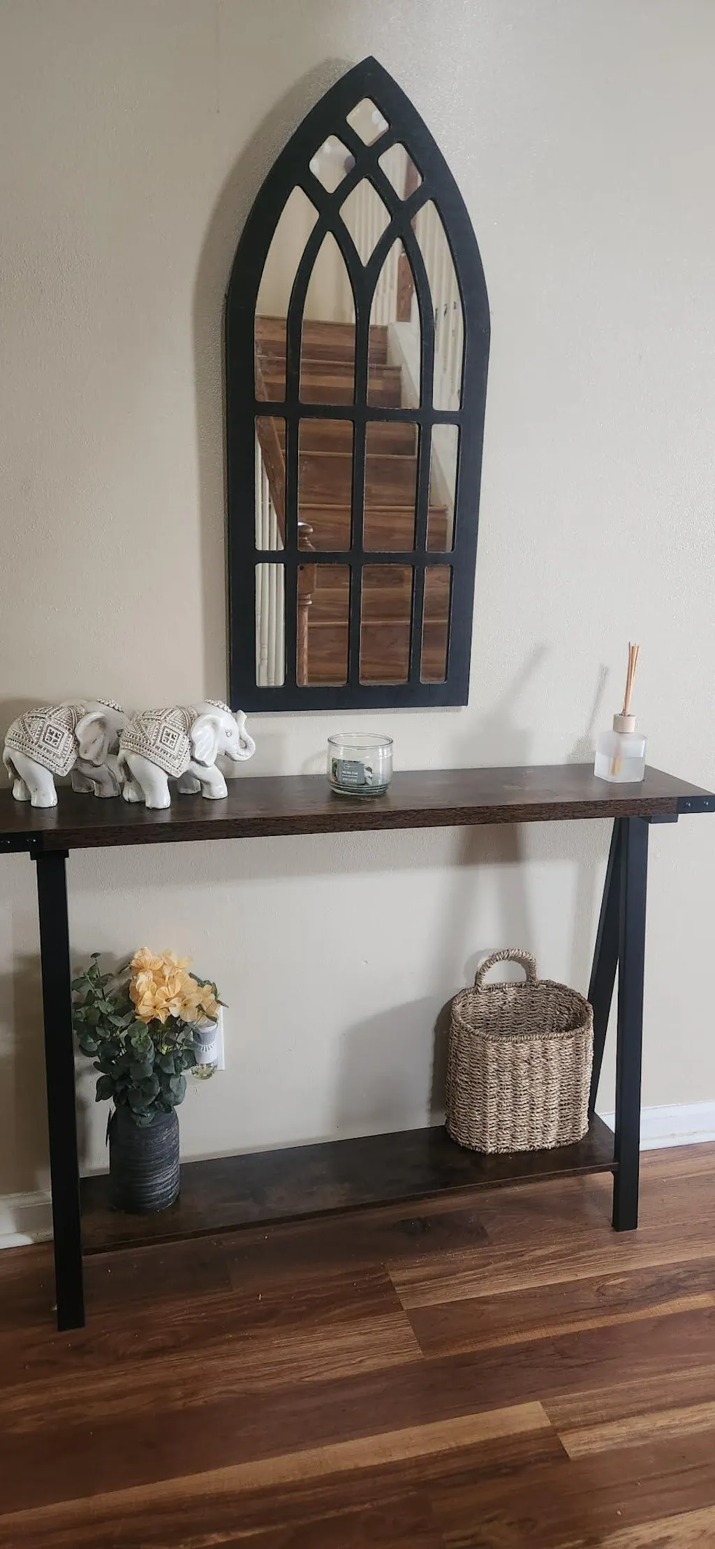 With its farmhouse-inspired design, durable construction, and versatile functionality, this console table combines style with practicality. The metal frame ensures stability, making it suitable for various uses throughout your home.