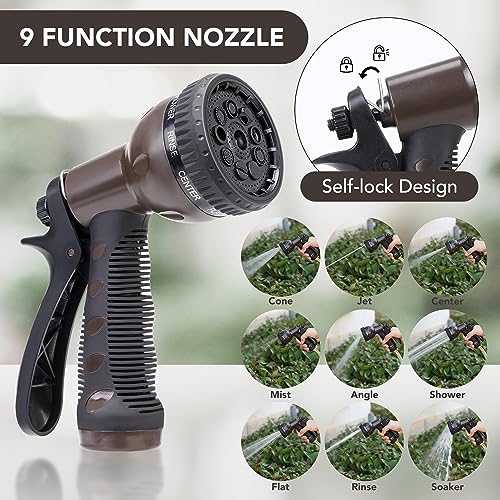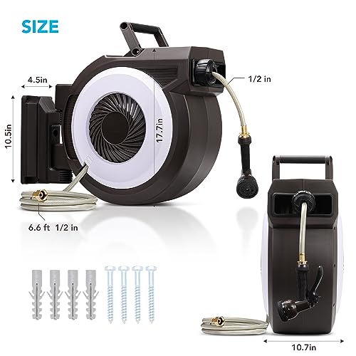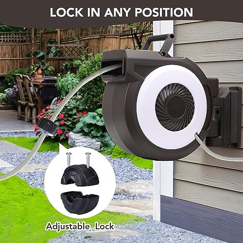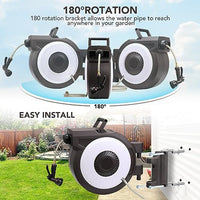 Garvee Retractable Garden Hose Reel 1/2 in x 100 ft + 9-Function Sprayer Nozzle + Any Length Lock + Hybrid Material + Auto Rewind + 180° Swivel Bracket + Easy Watering
